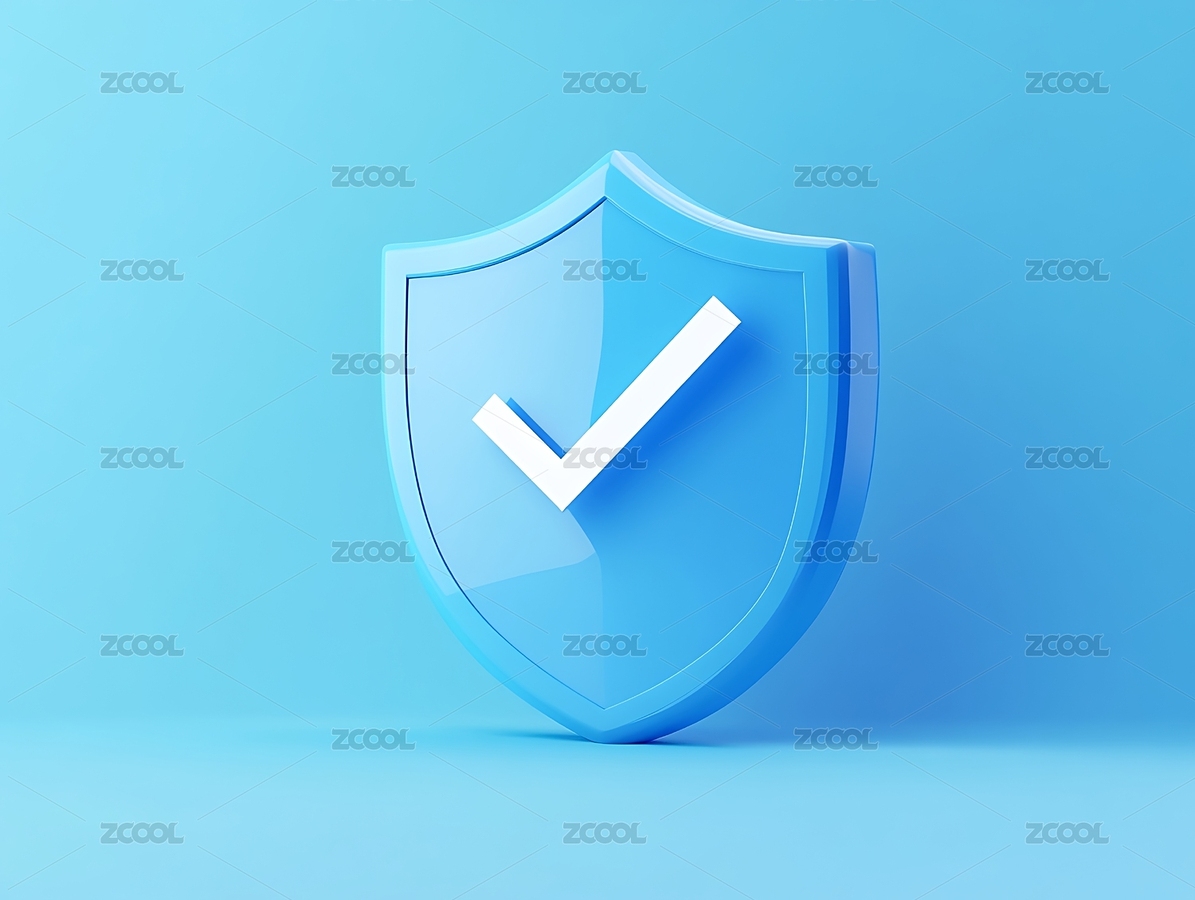 安全,保护,图标,确认,3D,盾牌,对号,验证,蓝色,象征