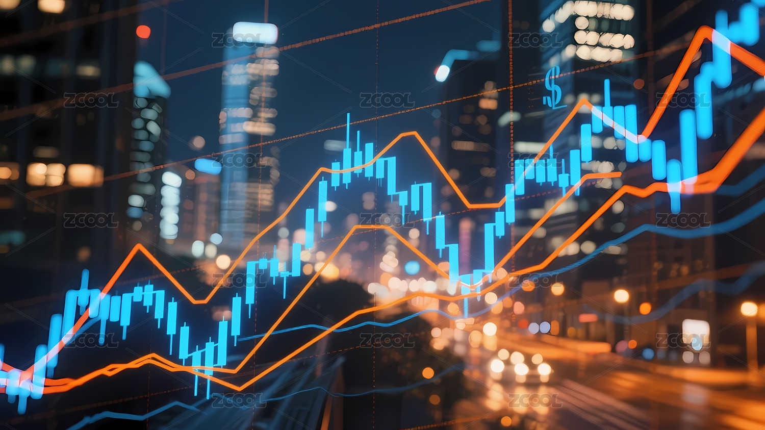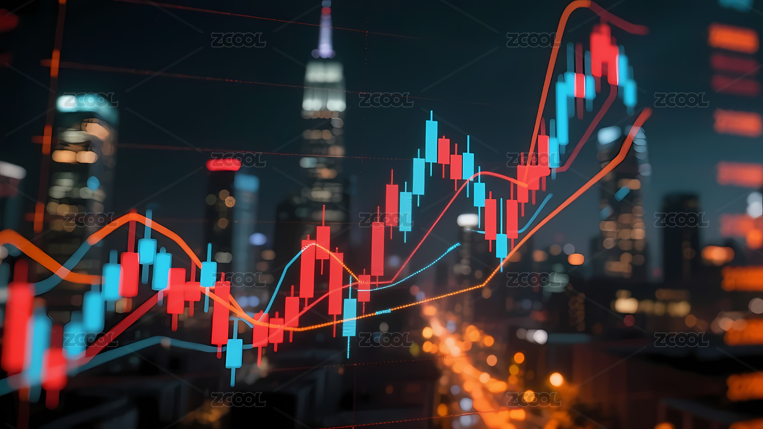 背景,橙色,蓝色,股票,图表,金融,城市,夜景,动态,趋势