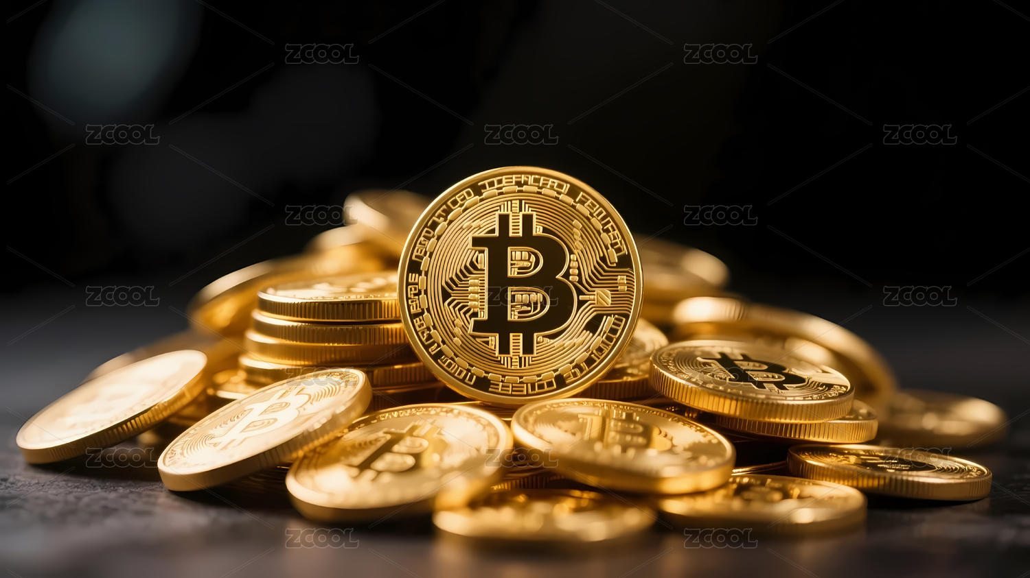 金色比特币堆叠特写