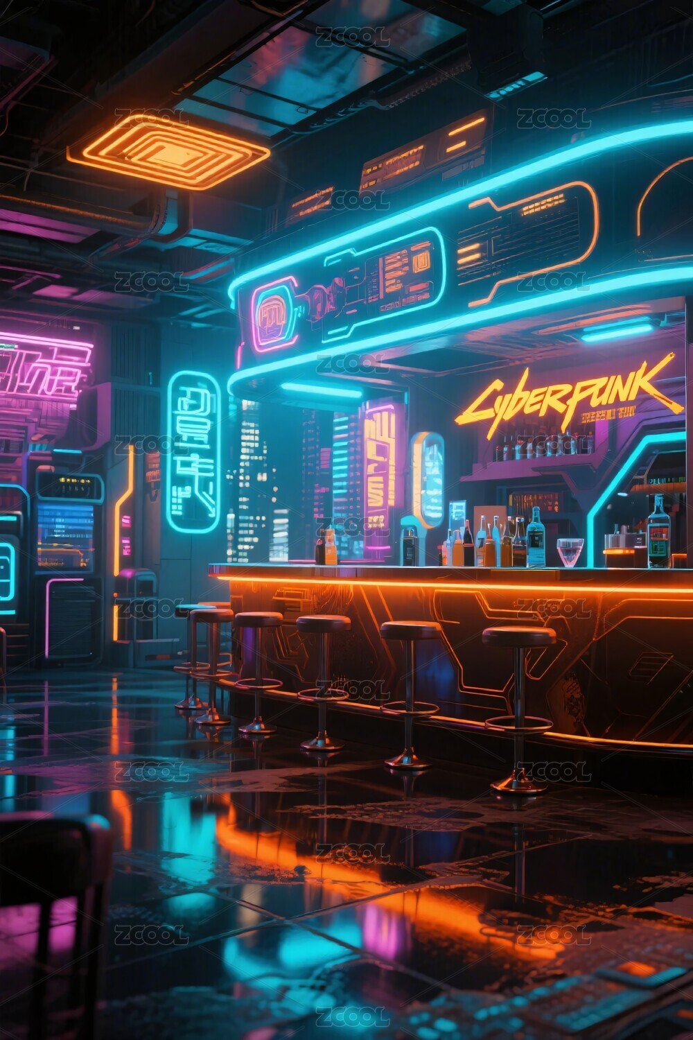 赛博朋克风格酒吧场景