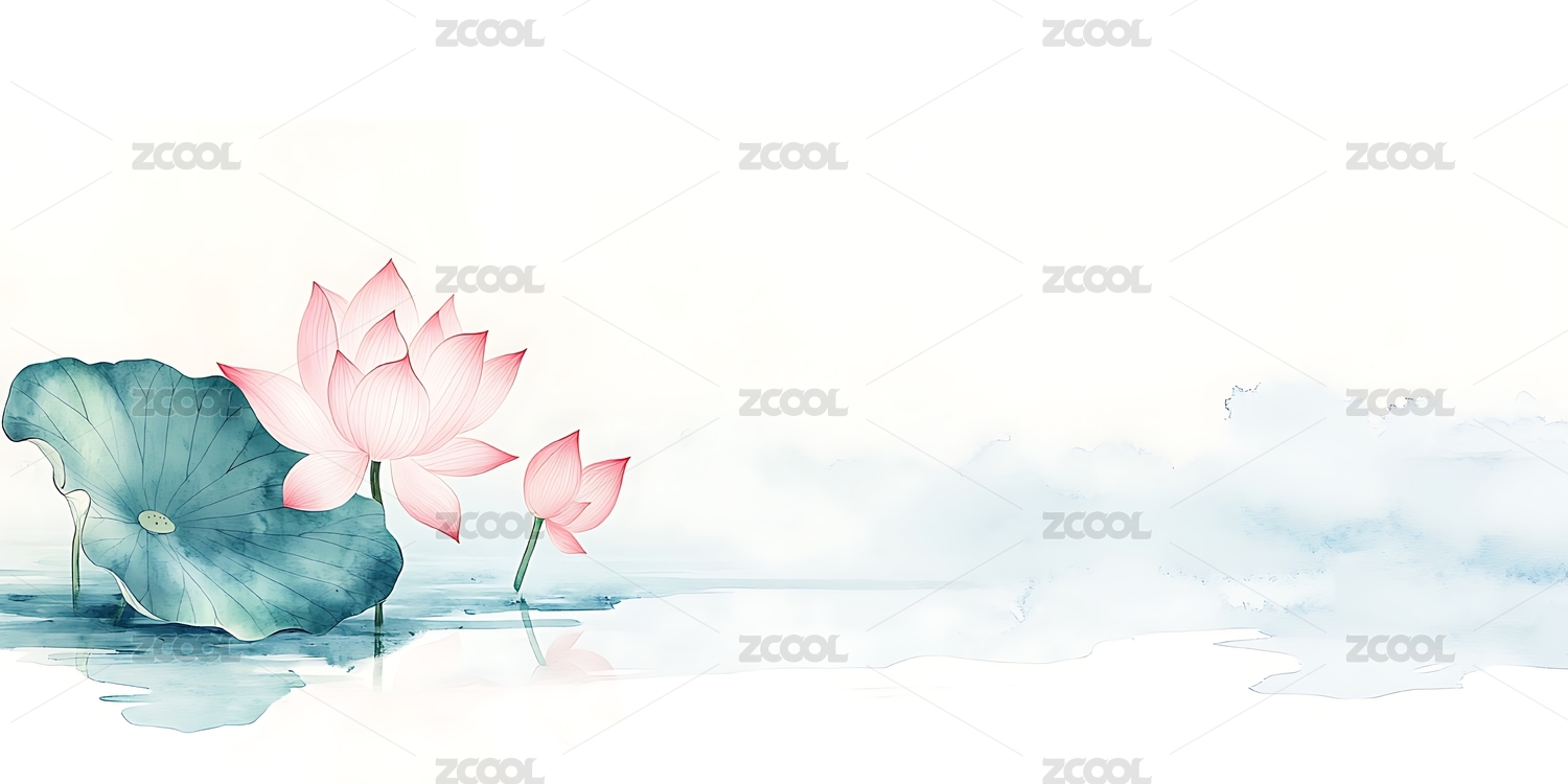 意境,唯美,清新,水墨,莲花,花瓣,粉色,绿色,写意,留白