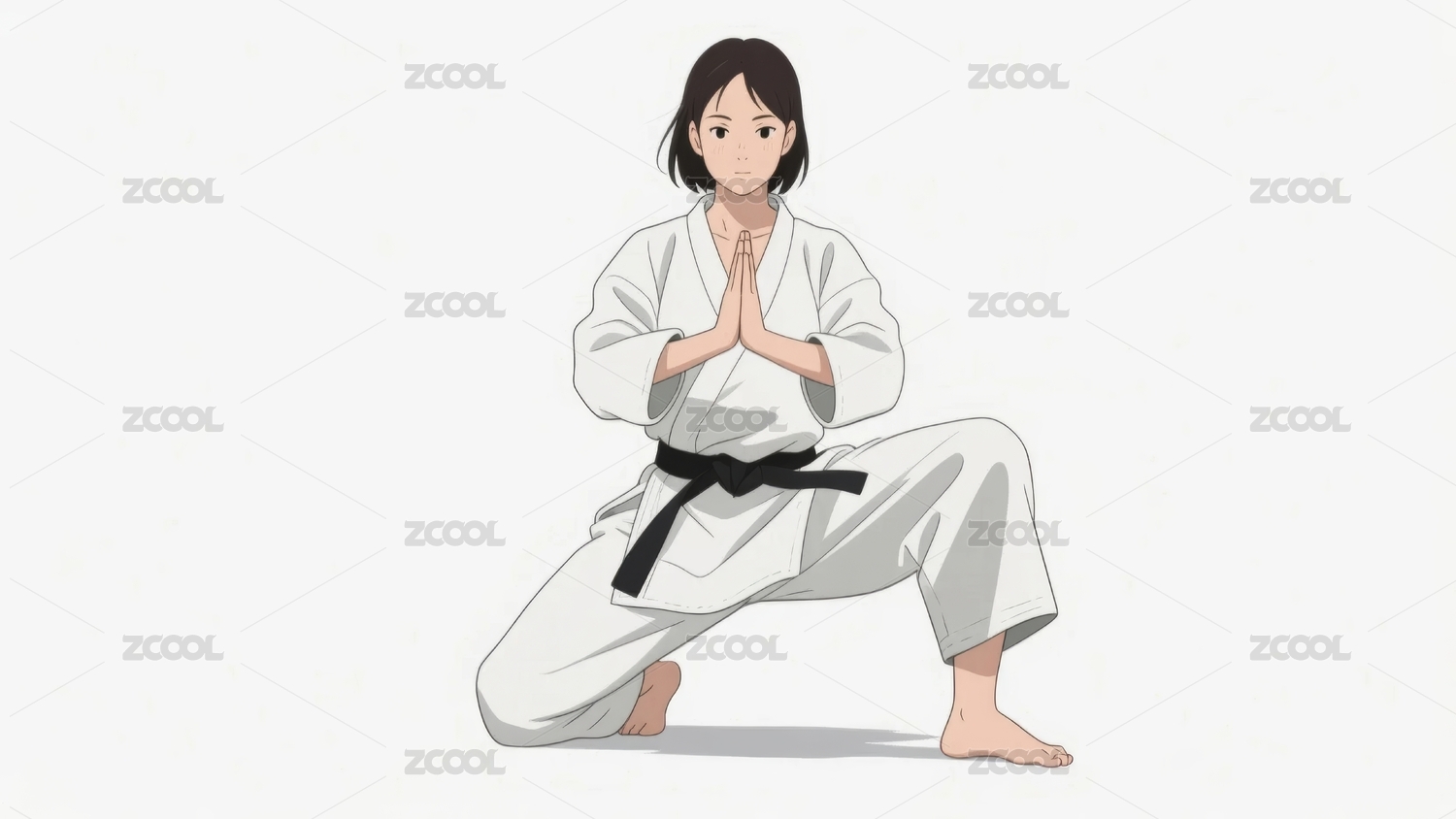 穿着柔道服练习武术的女生插画