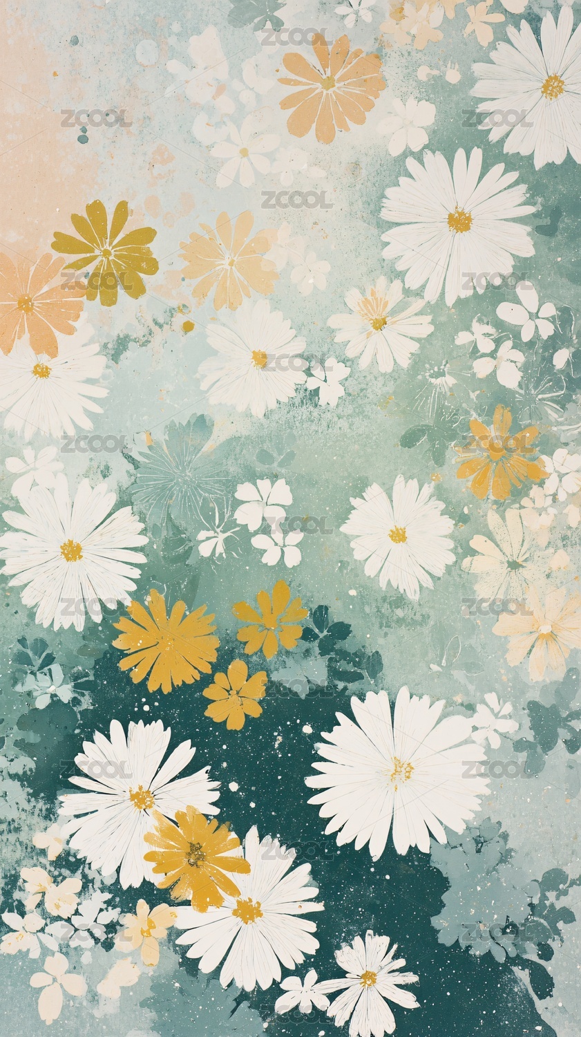 数码复古水彩路边鲜花植物图案抽象海报背景