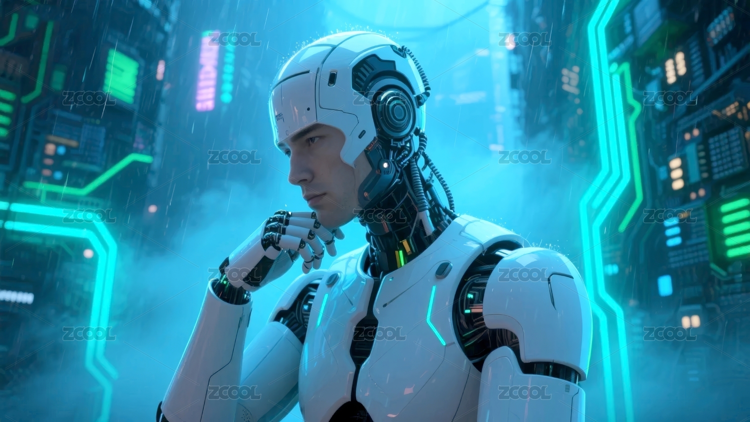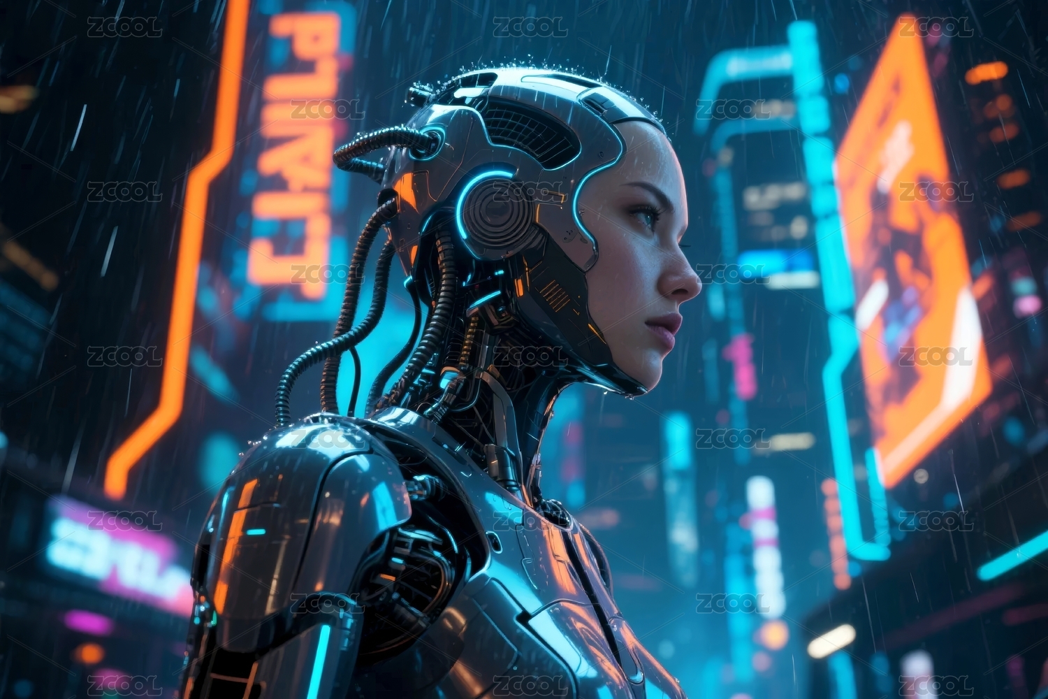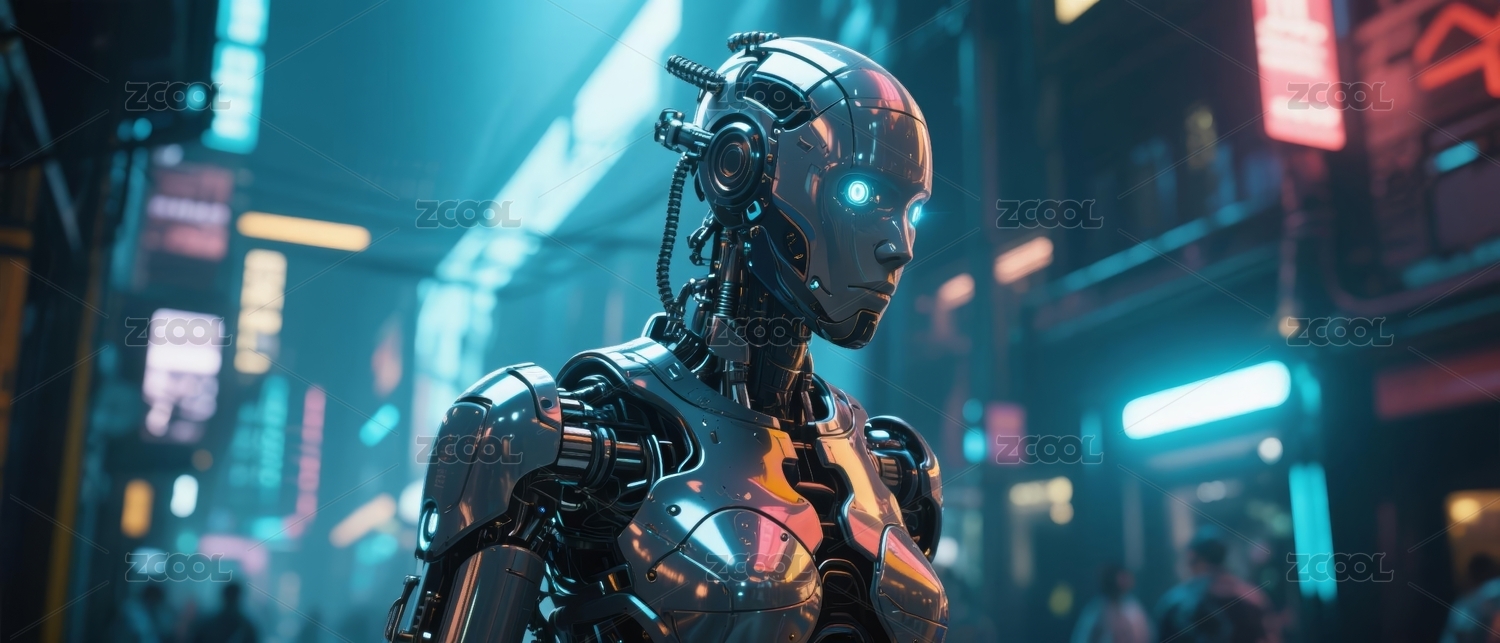 机械人形赛博风未来科技场景