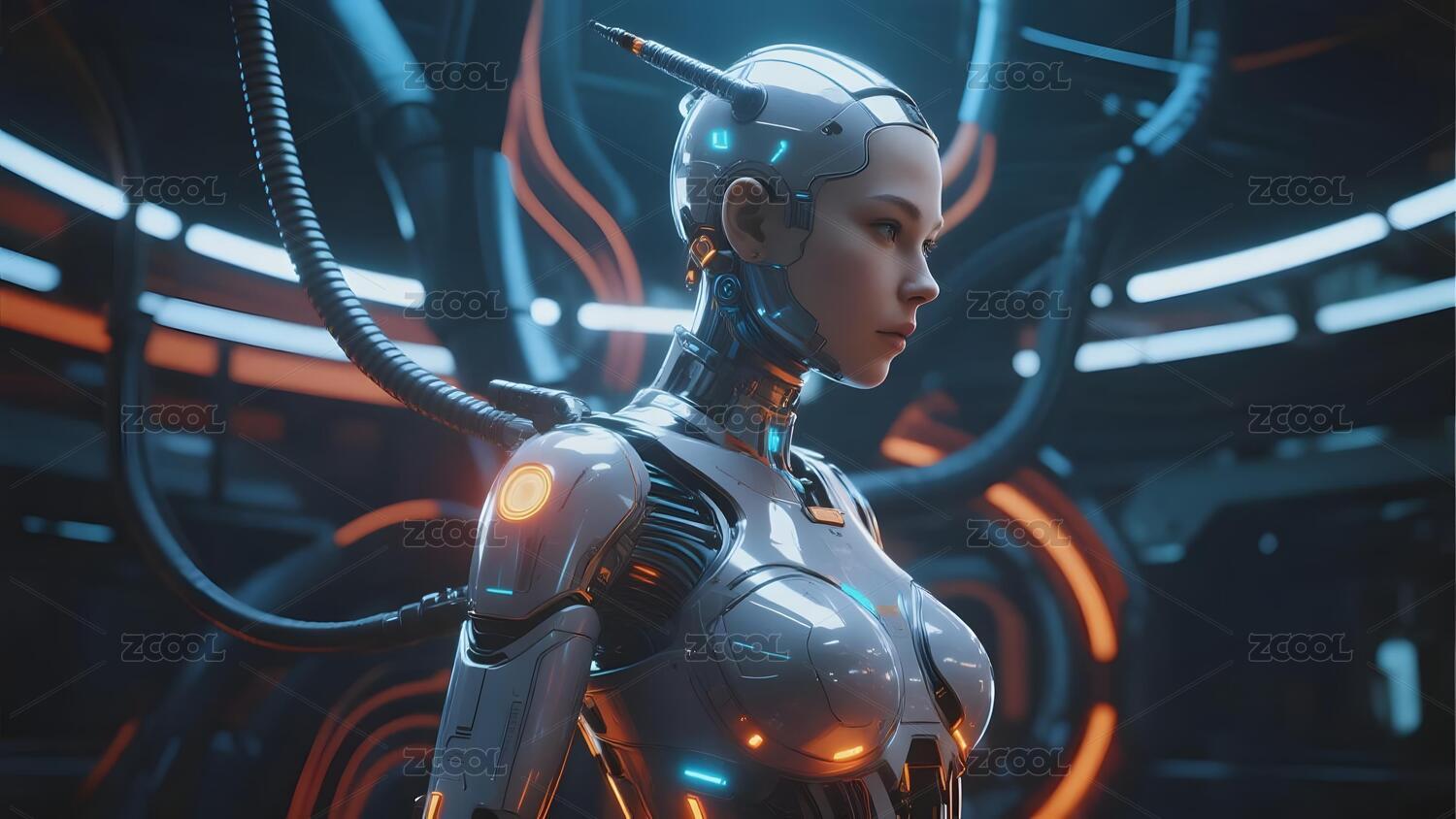 科技感十足的赛博朋克女机器人