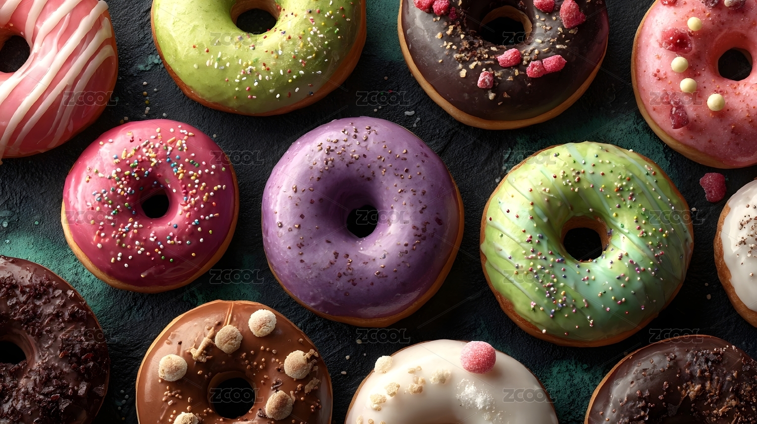 彩糖霜甜甜圈美食场景