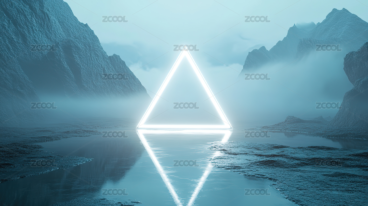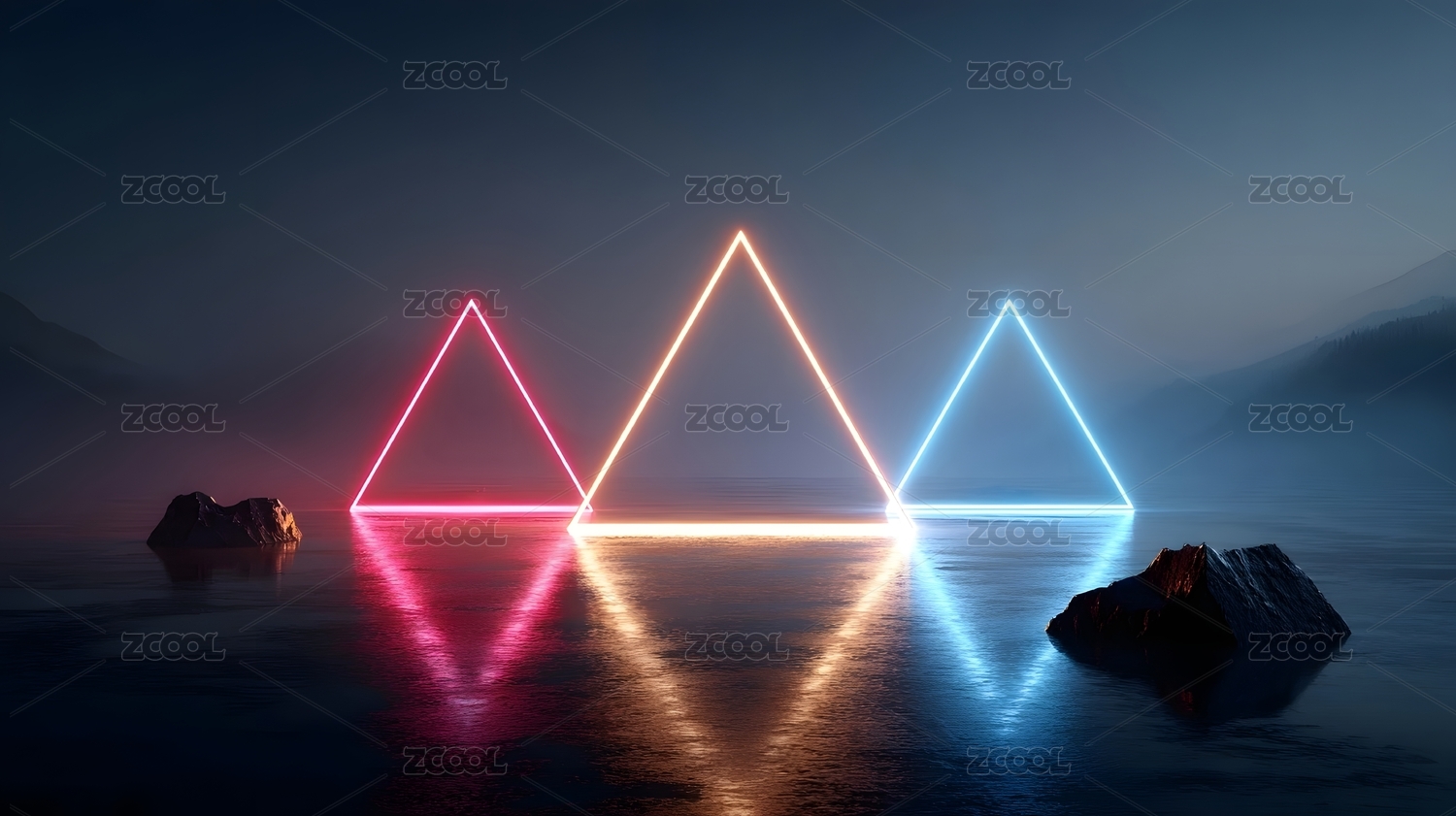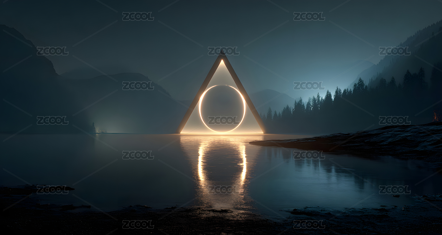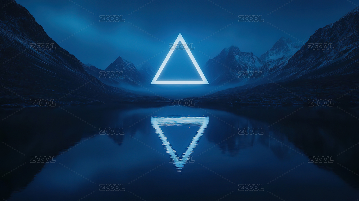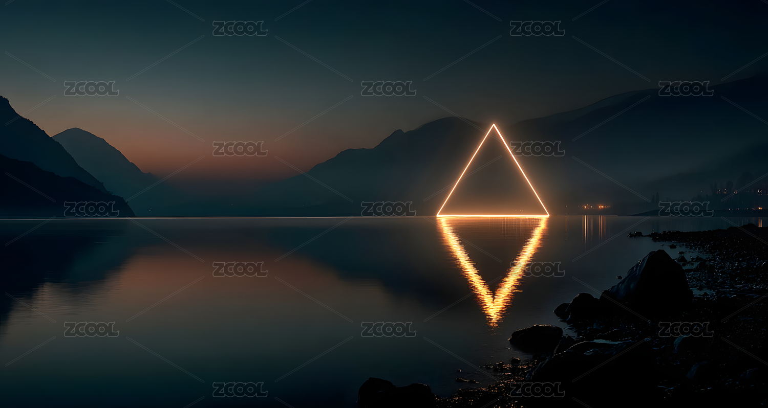 金字塔,星空,水面,山脉,反射,光芒,暗夜,倒影,宇宙,梦幻
