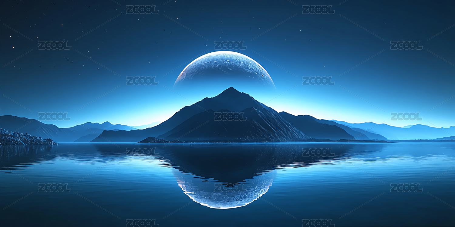 星球,山脉,水面,光晕,黑暗,星空,岩石,反射,梦幻,蓝色