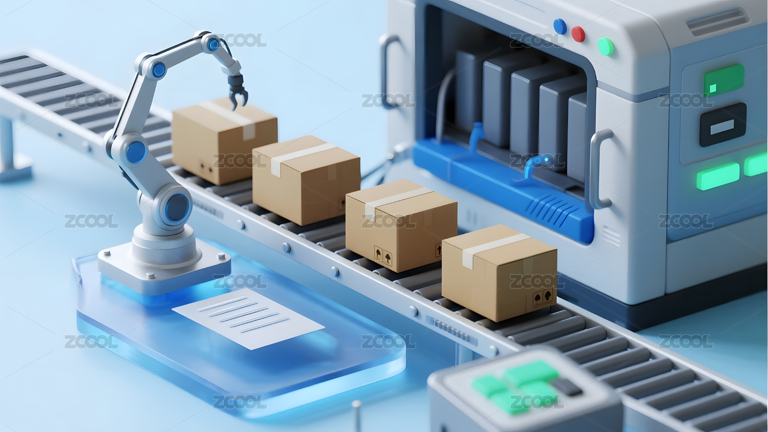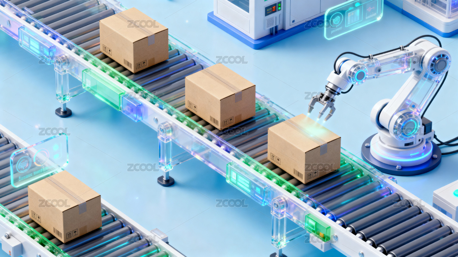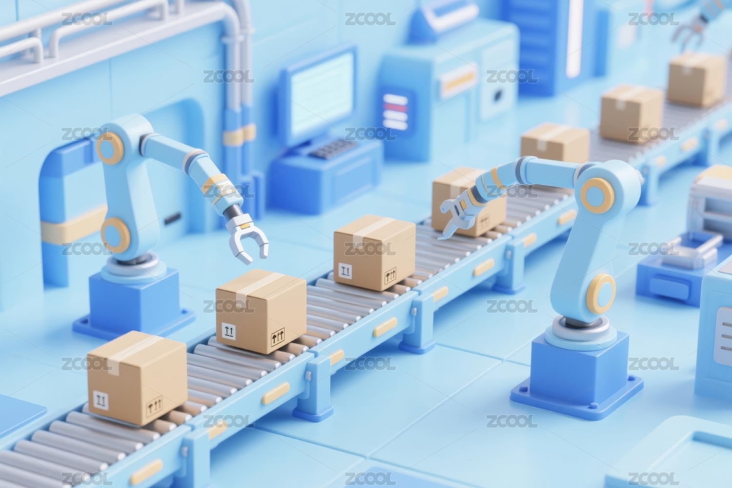 机器人,纸箱,传送带,自动化,蓝绿色,扁平化,图标,科技,包装,物流