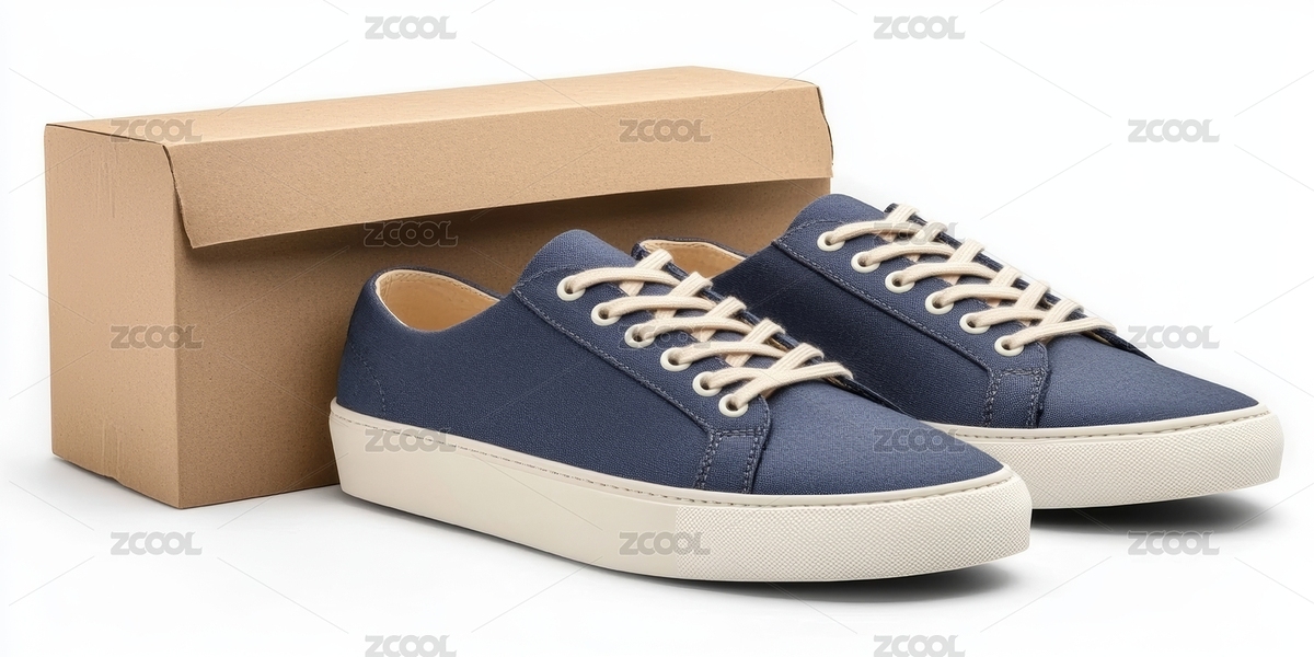 深蓝色帆布鞋与纸盒陈列 简约风格