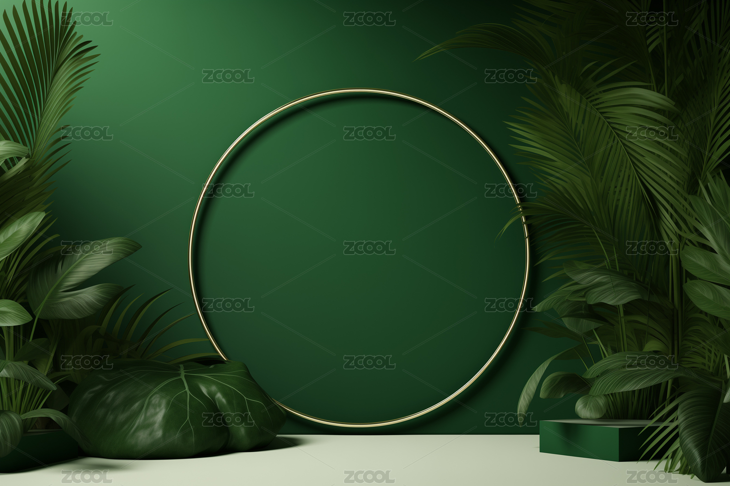 3D渲染静物产品展台绿色植物电商背景素材