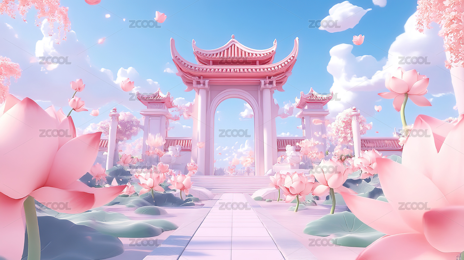 国风自然桃花粉色主题奇幻空间产品展示展台
