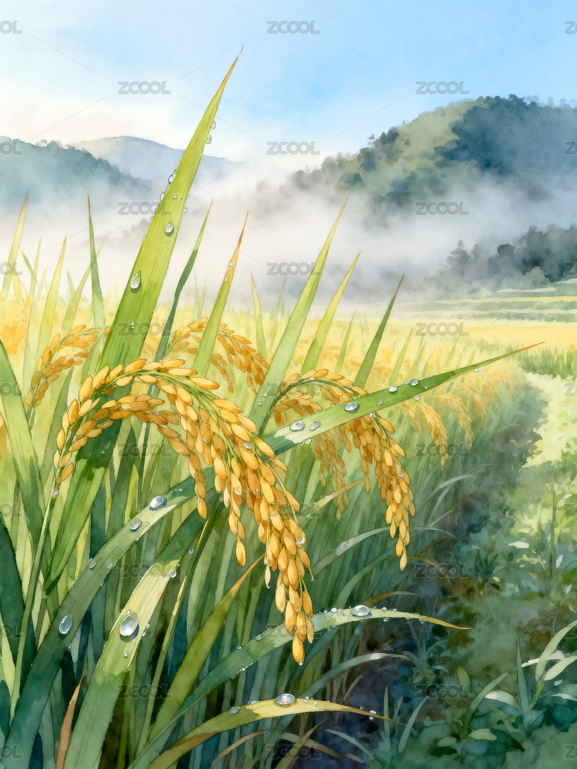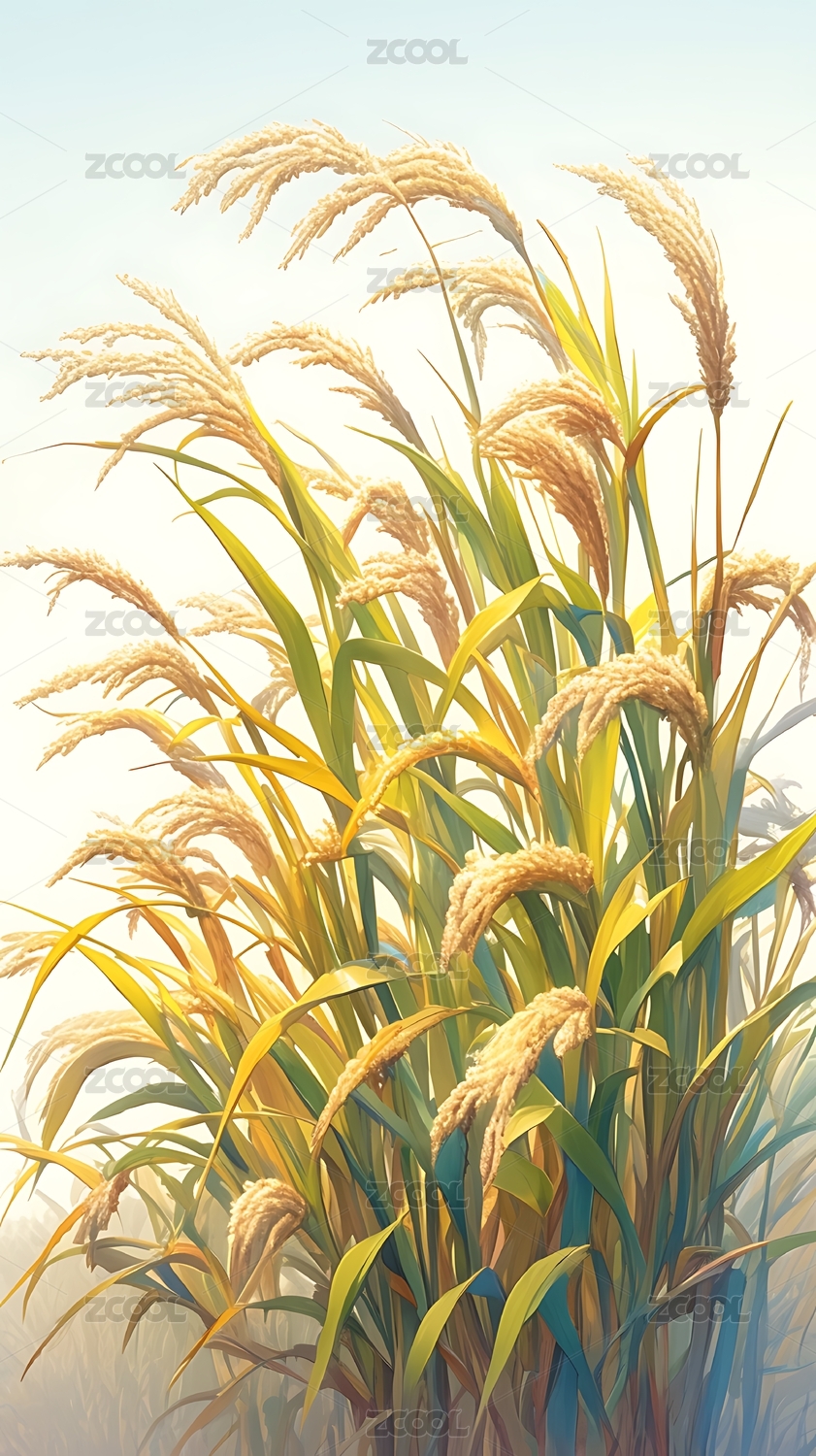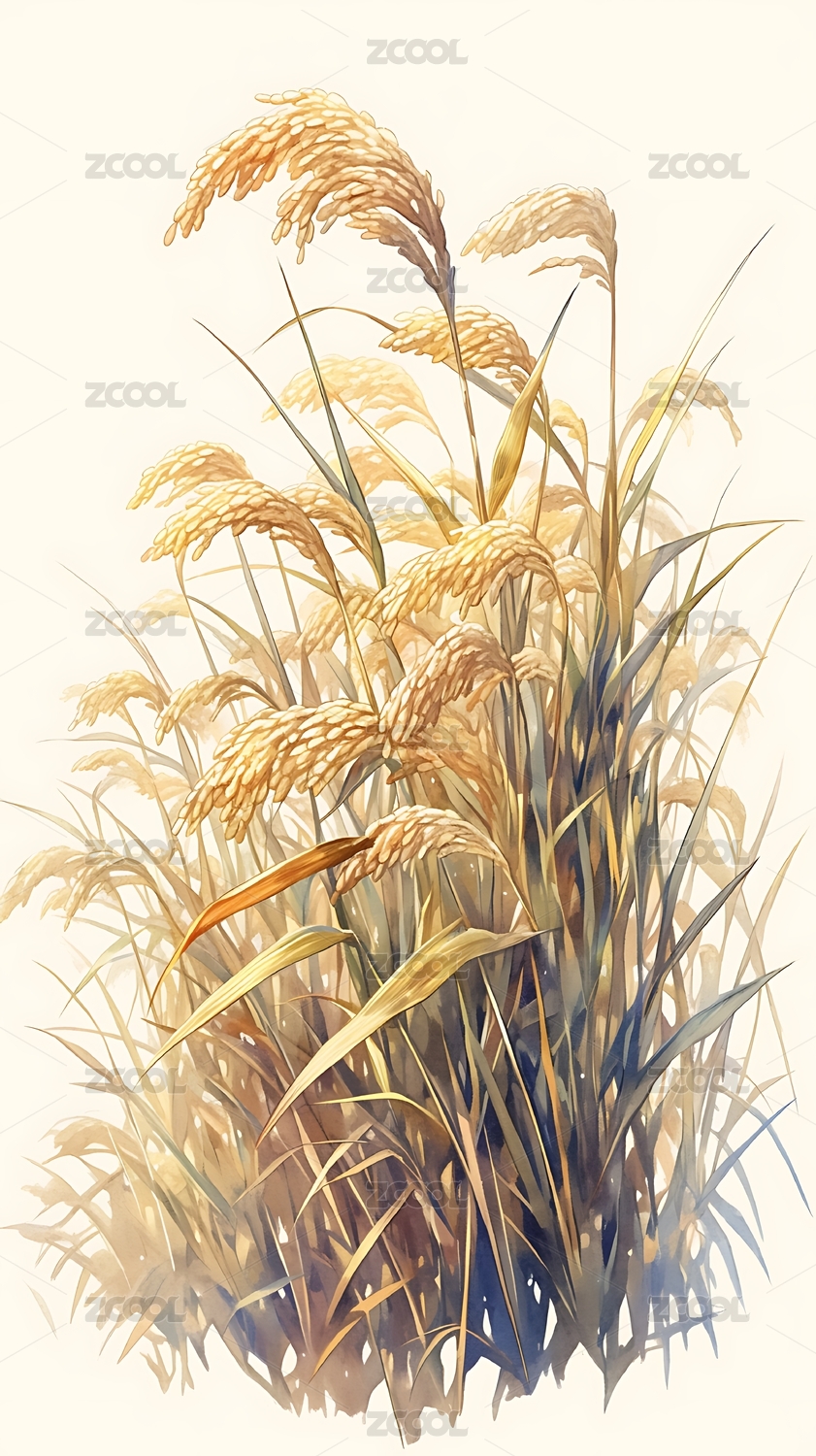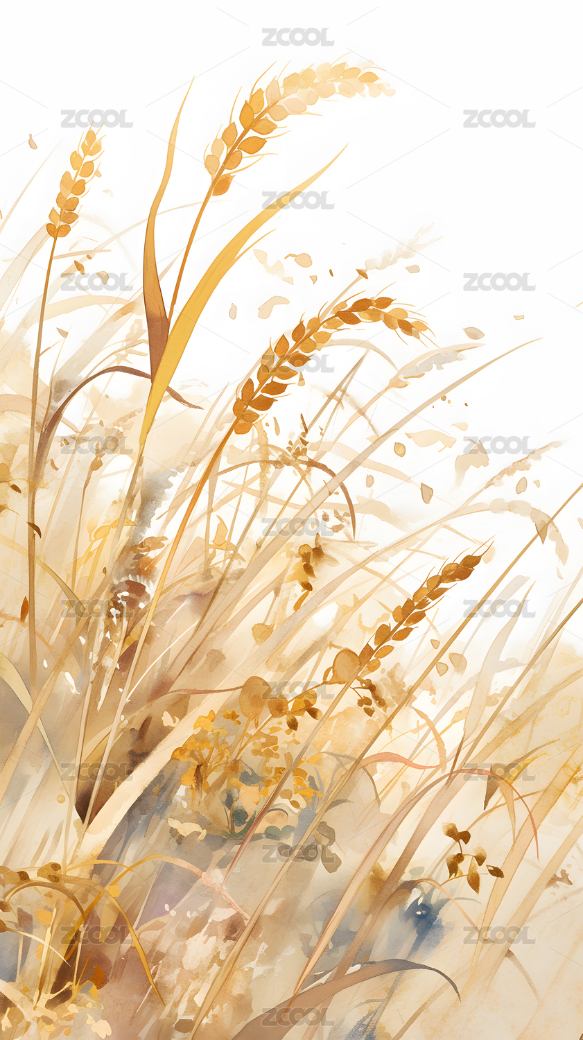 水彩,稻穗,金黄,丰收,插画,清新,自然,水墨,植物,农作
