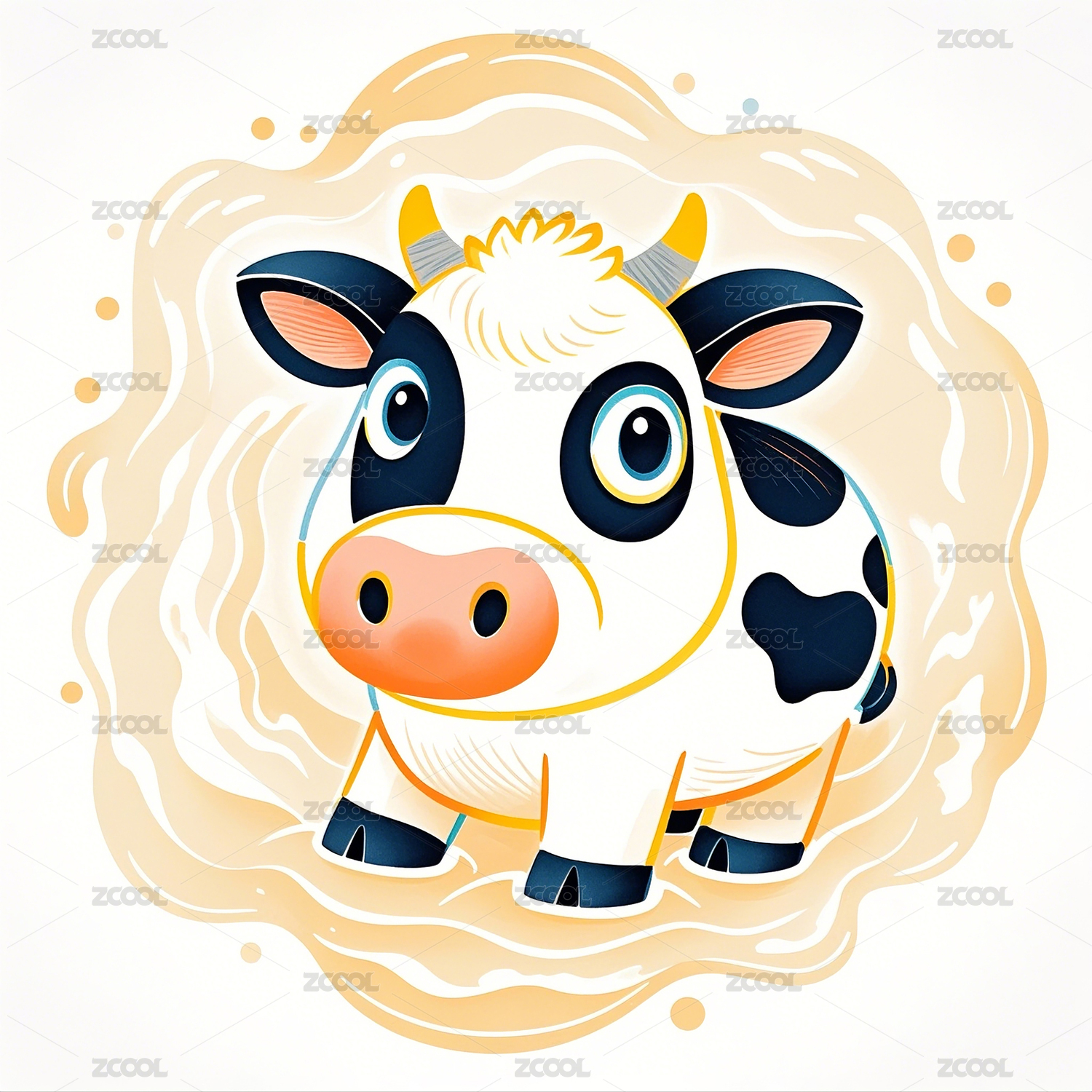 卡通奶牛的可爱瞬间憨态可掬的卡通牛宝宝