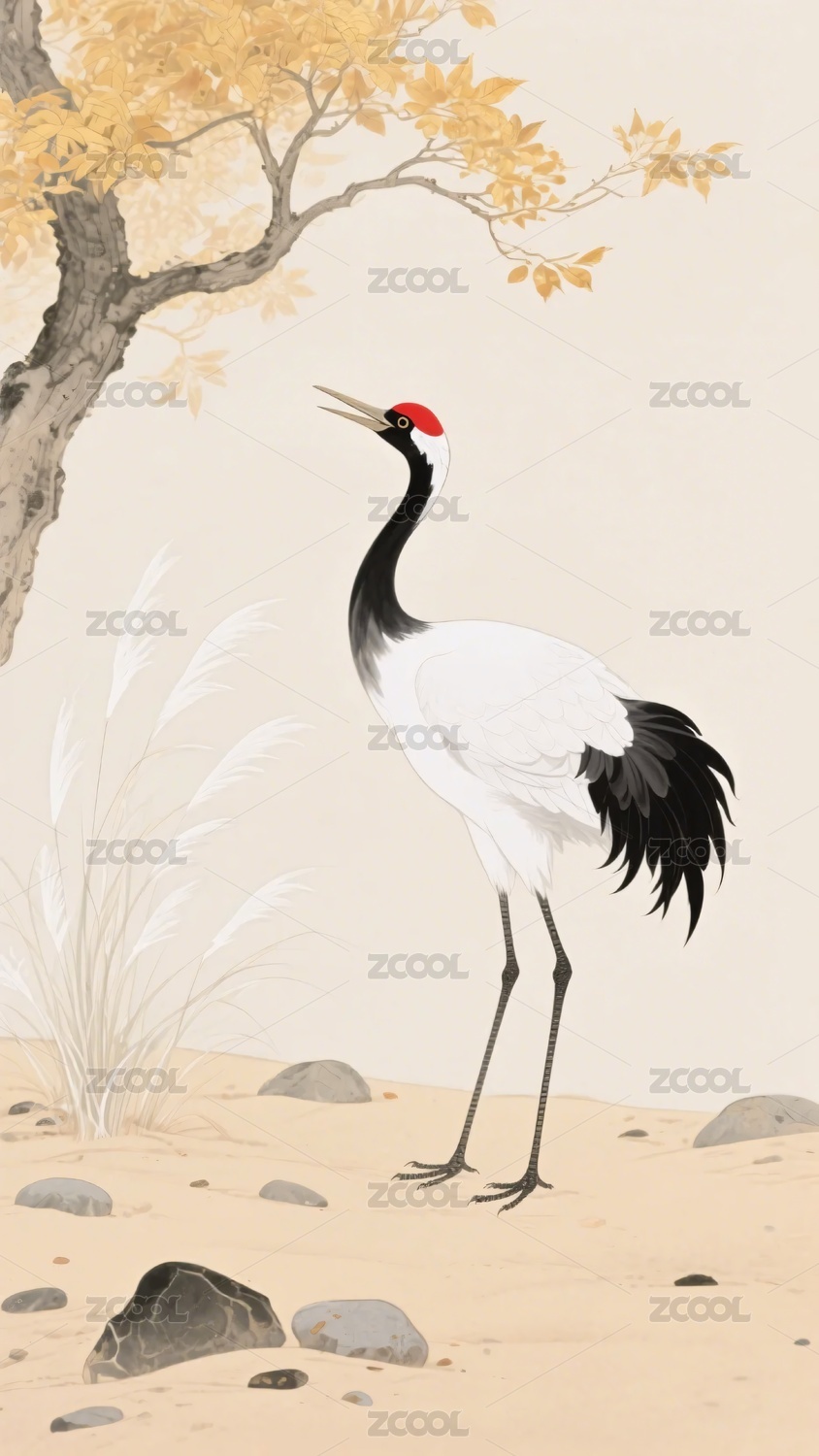 树下丹顶鹤插画