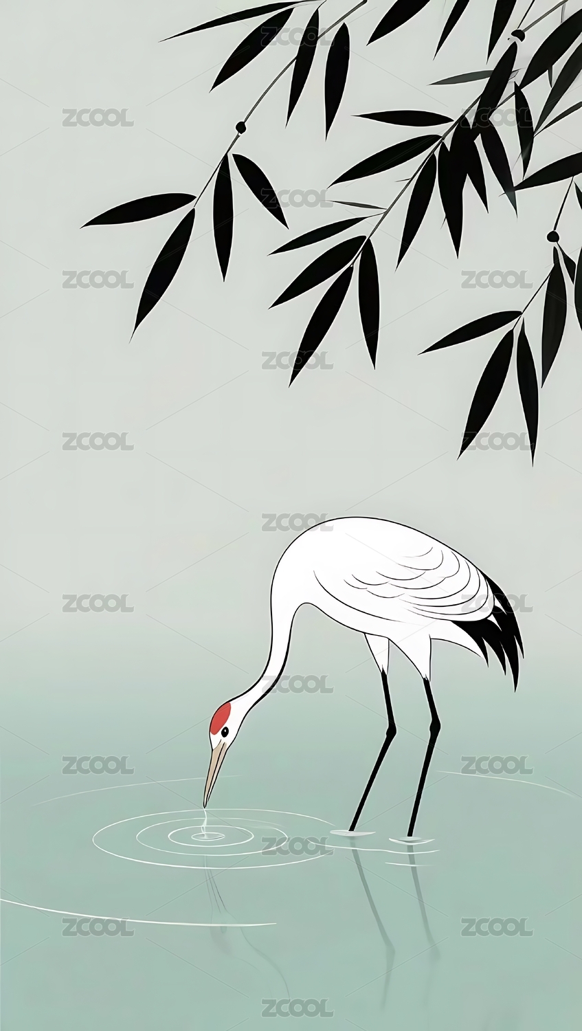 水墨,仙鹤,竹子,留白,国风,意境,雅韵,禽鸟,池畔,倒影