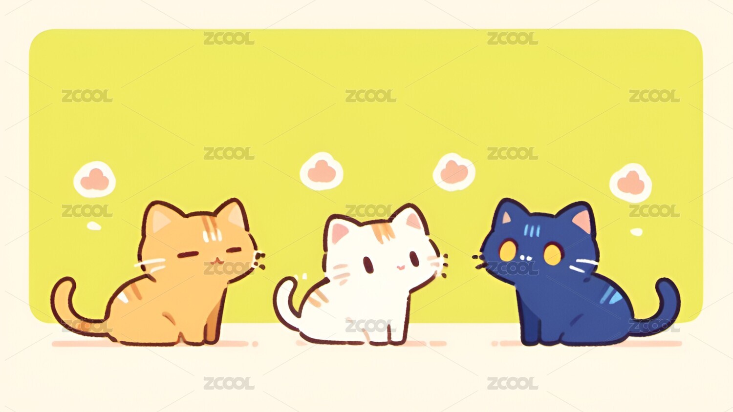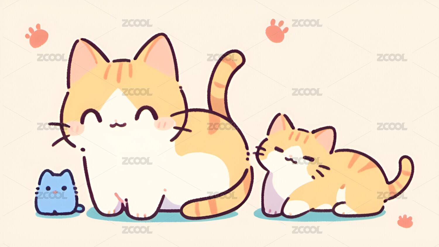 米色背景上几只可爱猫咪插画