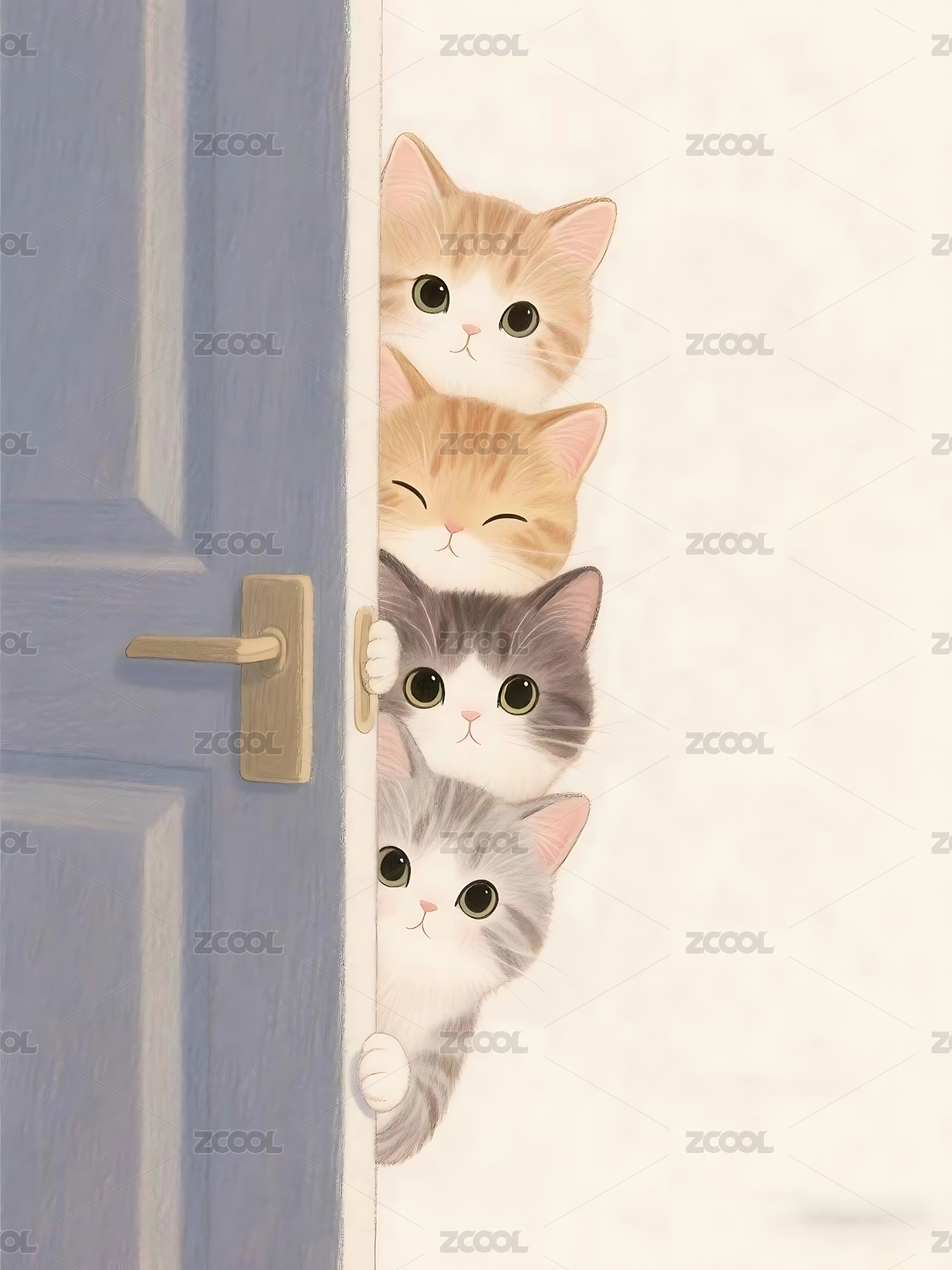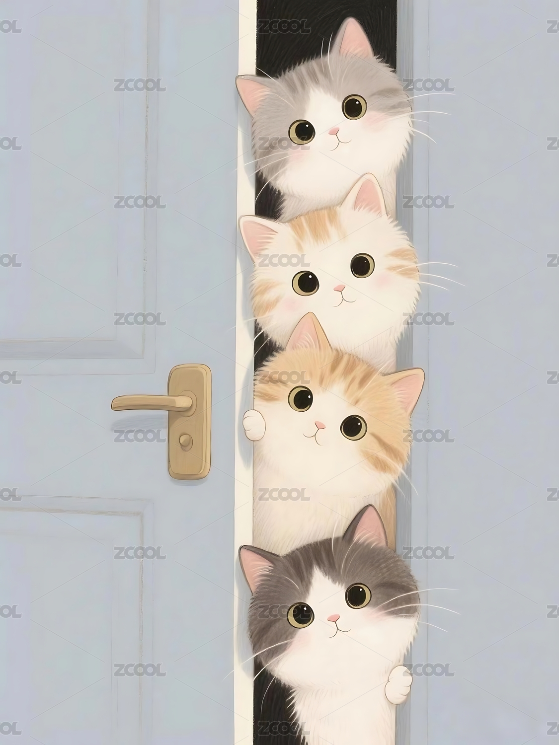 猫咪探门插画