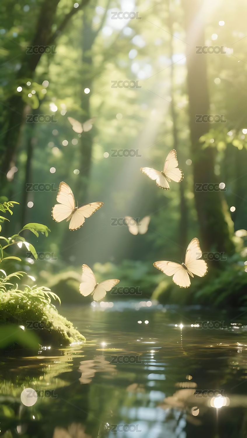 森间,蝶影,光缕,翠叶,苔青,幽径,清辉,彩翼,灵舞,静林