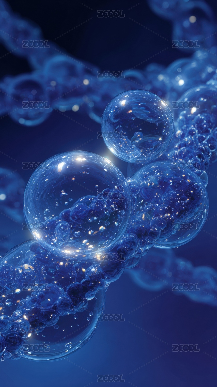 蓝色光点交织的透明泡泡链