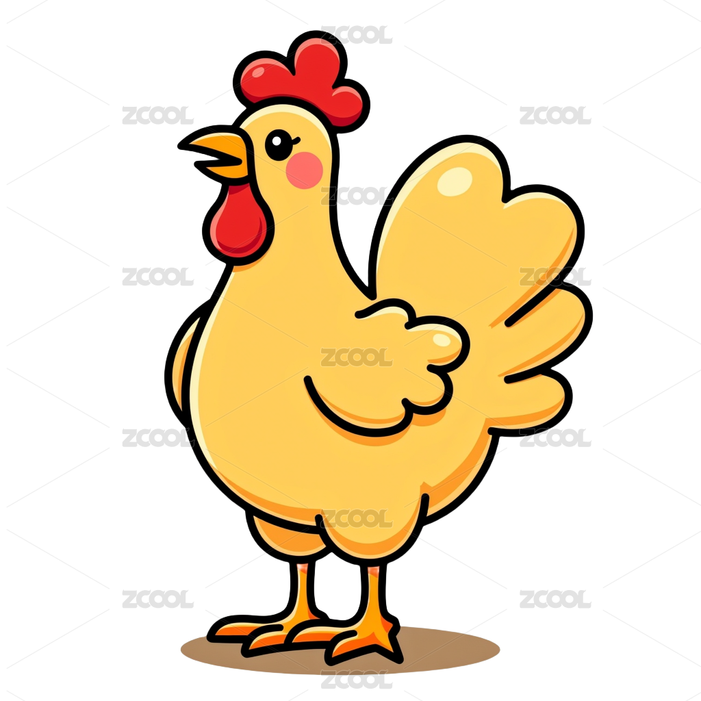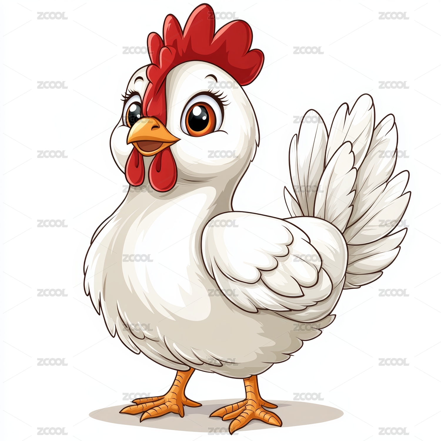 母鸡,插画,白色母鸡,红色鸡冠,肉垂,农场动物,家禽,卡通母鸡,农场插画,可爱动物