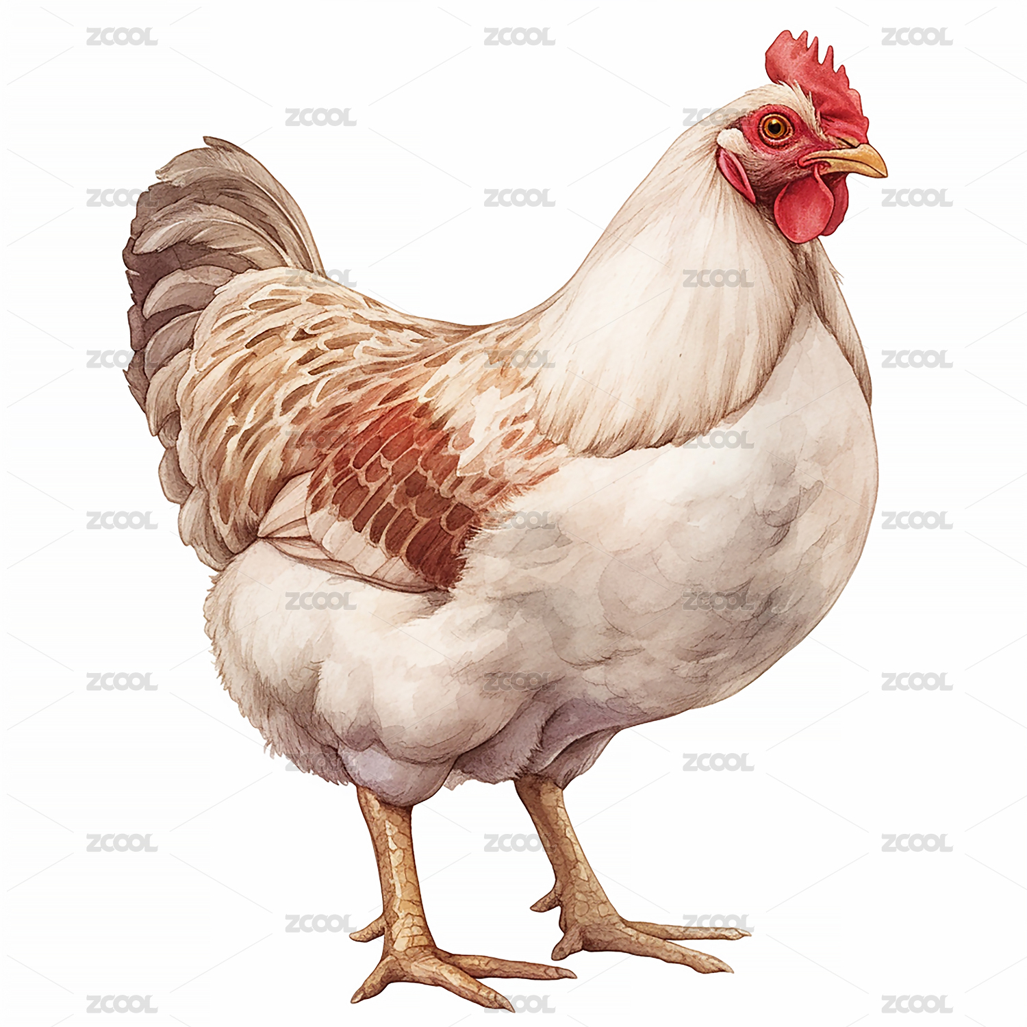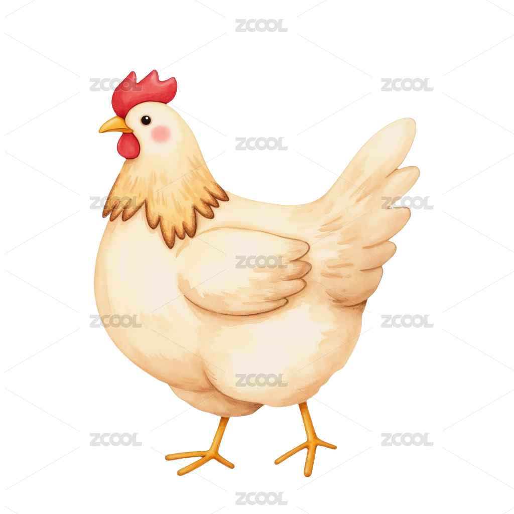 母鸡,插画,白色母鸡,红色鸡冠,肉垂,农场动物,家禽,卡通母鸡,农场插画,可爱动物