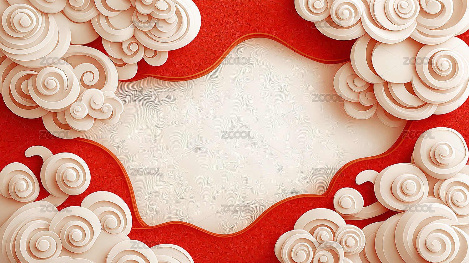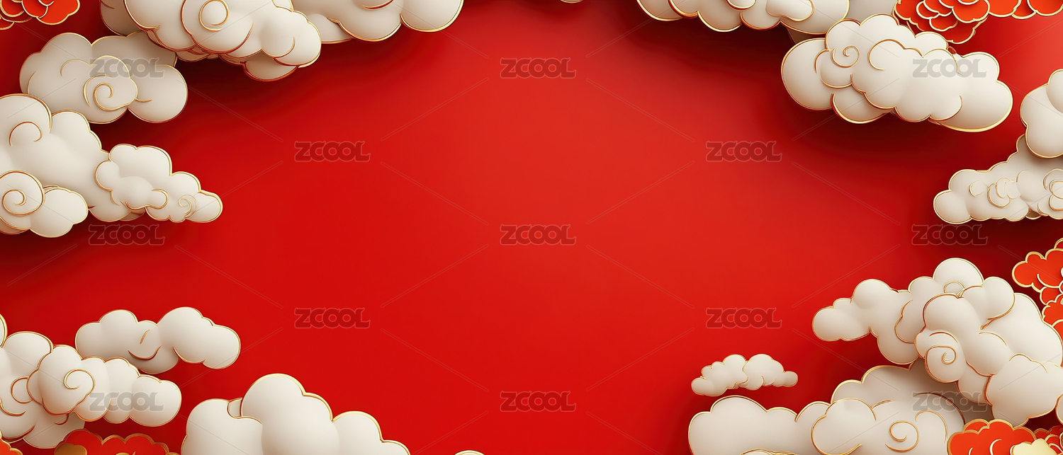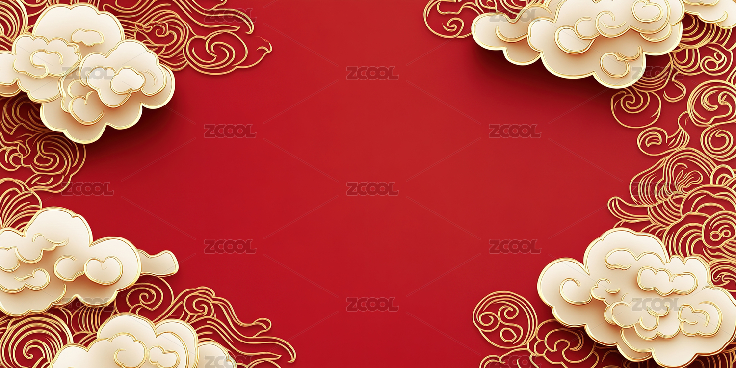 新年春节国潮祥云底纹传统祥云图案红色背景