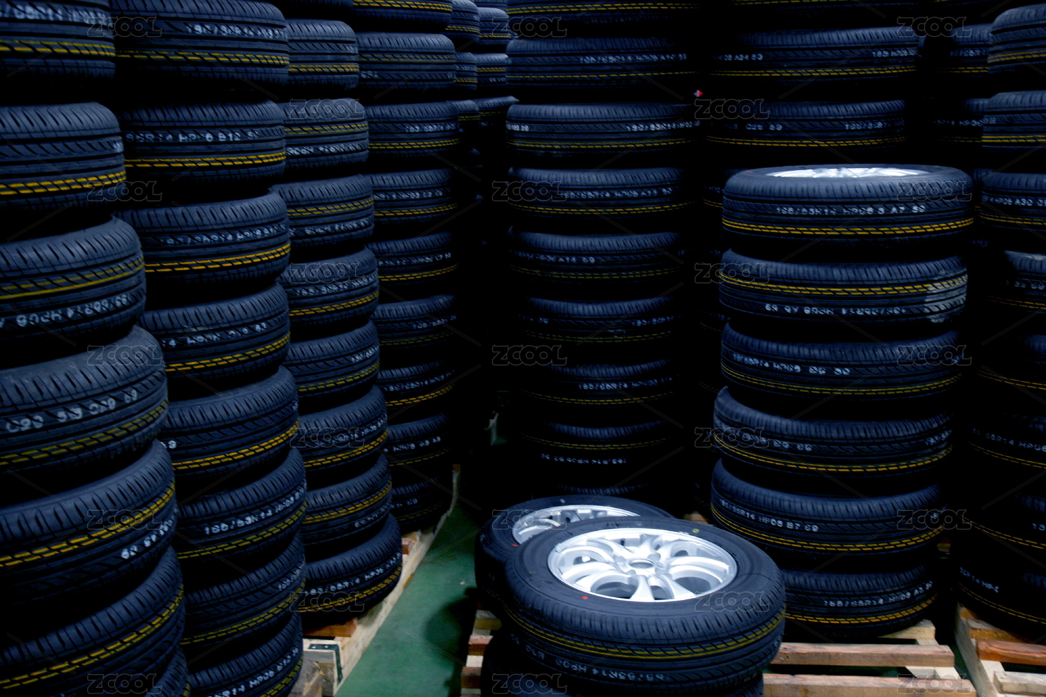 仓库堆放整齐轮胎