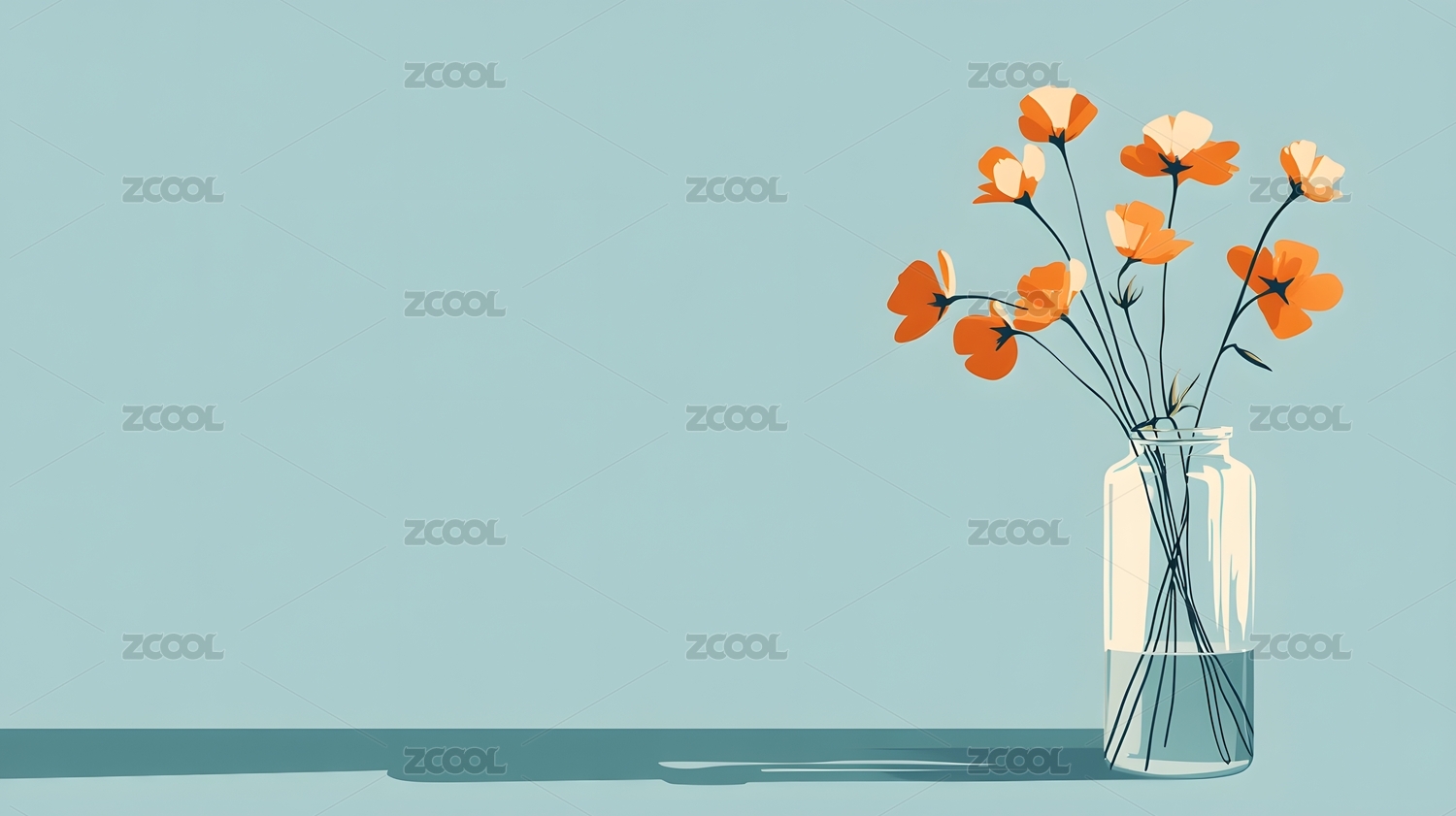 橙色花朵玻璃瓶静物淡雅插画