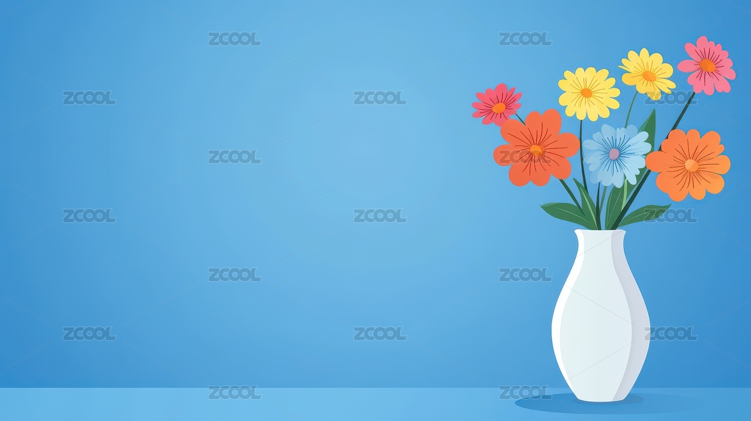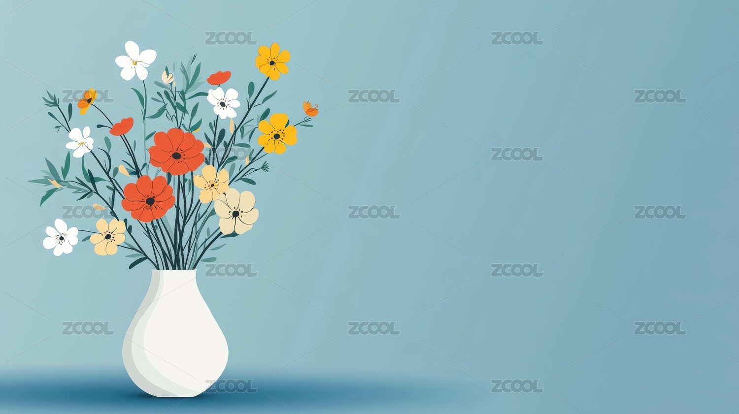 花瓶中绽放的多彩花卉插画
