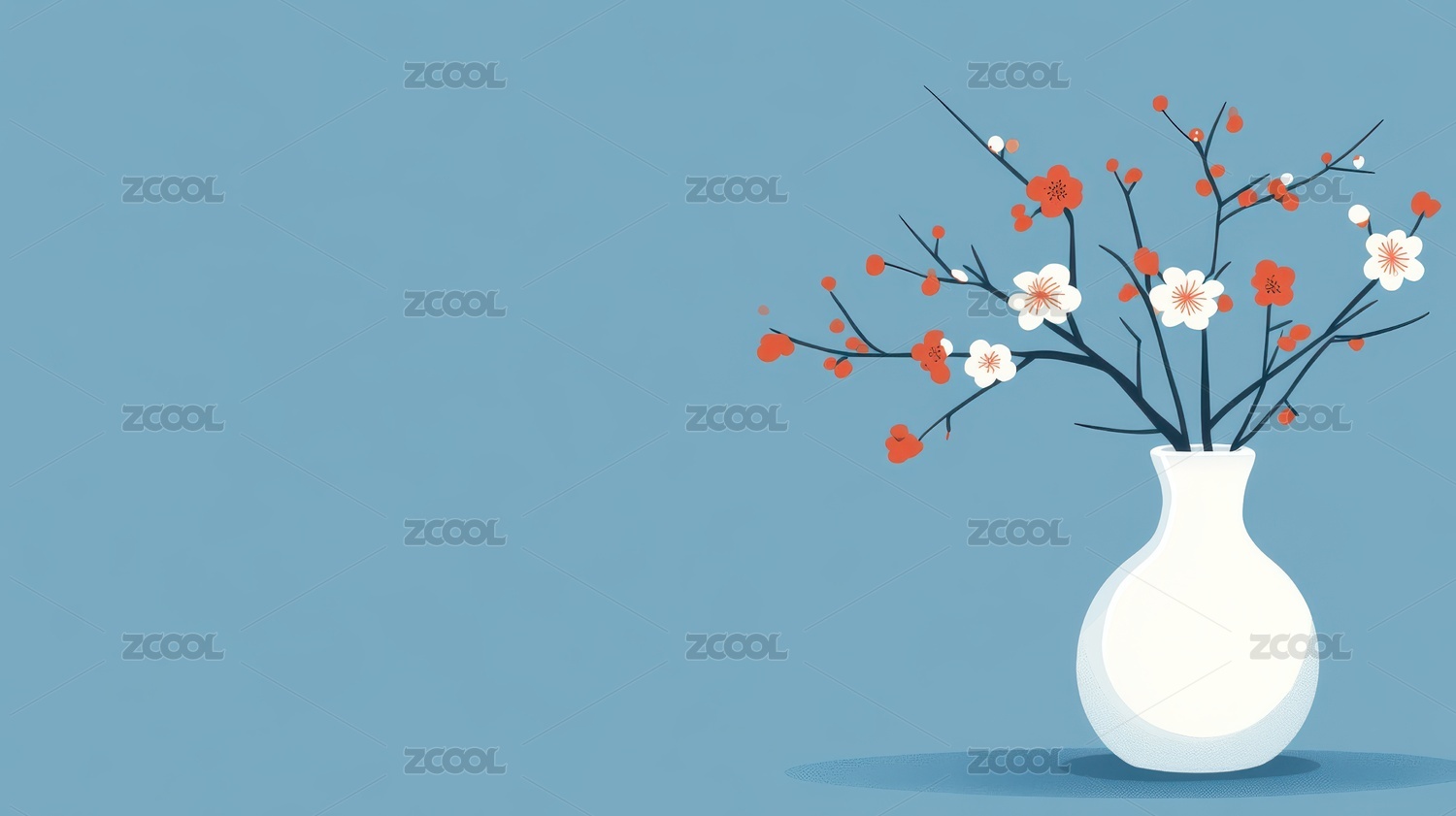 简洁花瓶搭配梅花枝的静谧场景