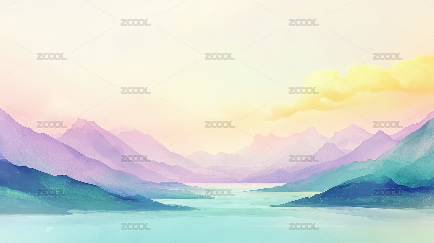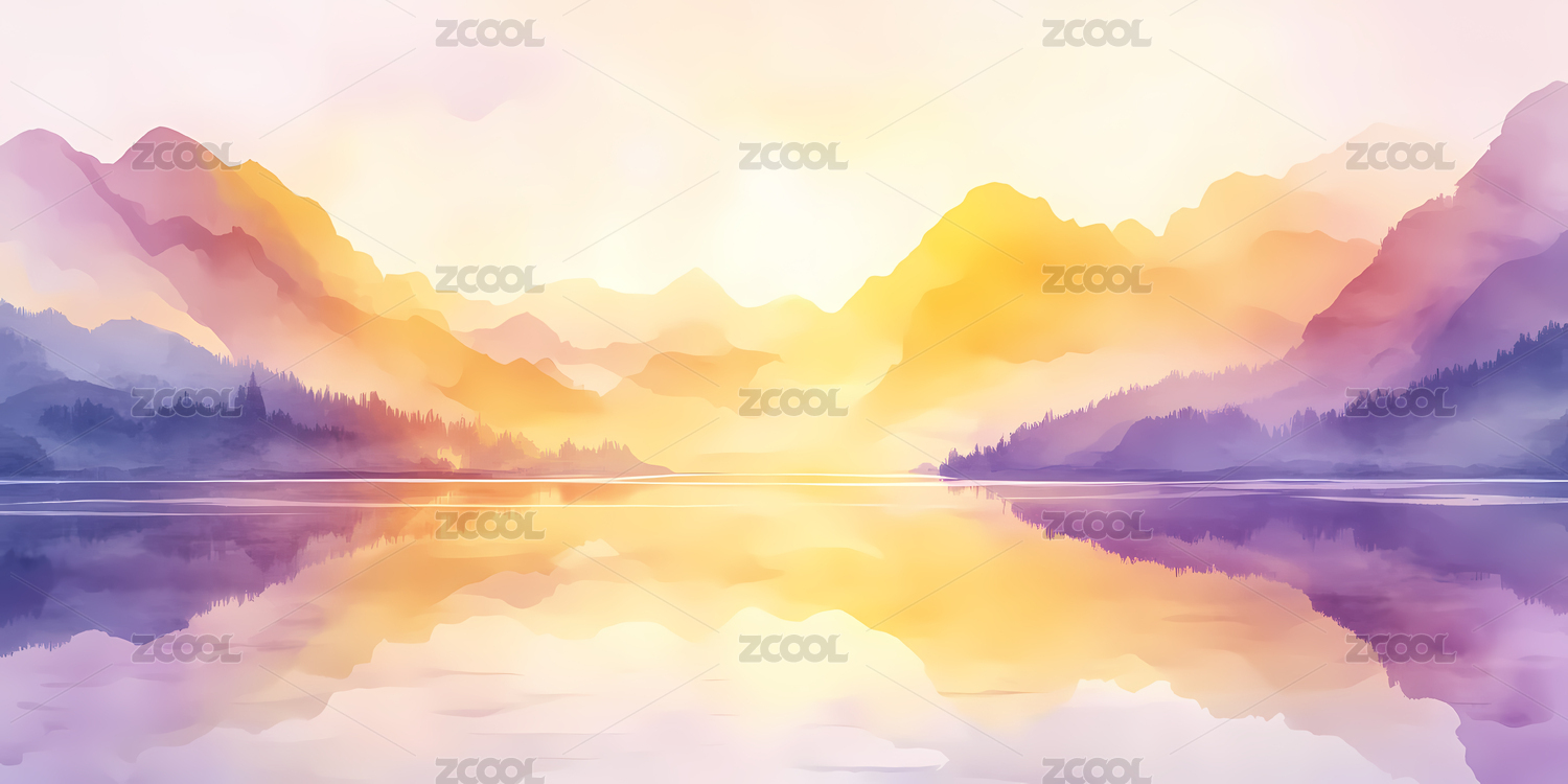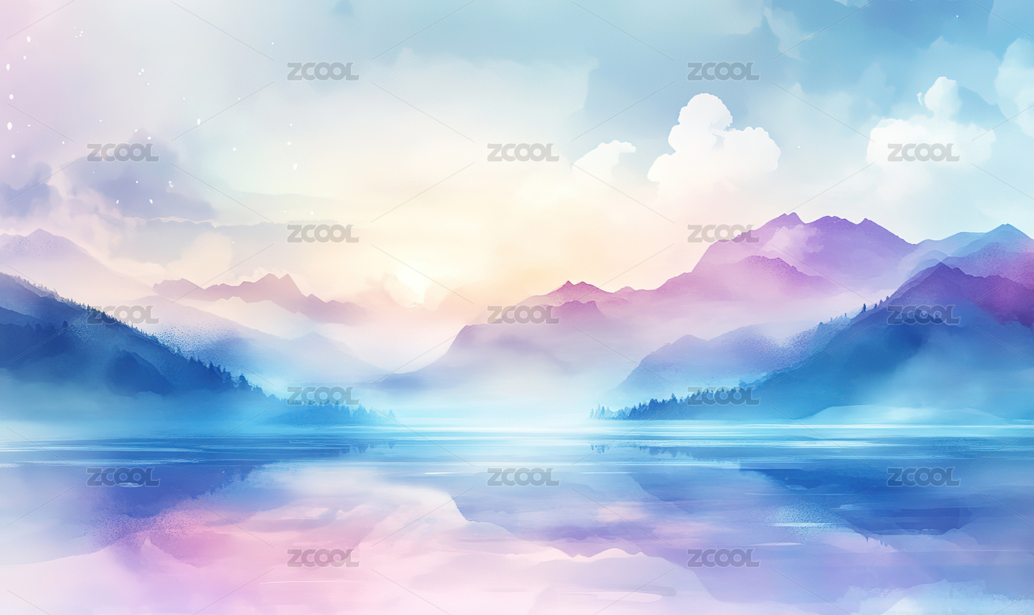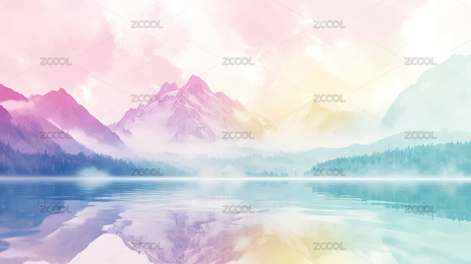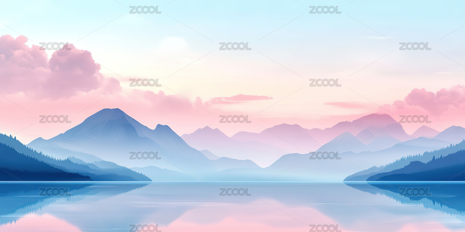 梦幻,山峰,静谧,淡雅,倒影,山水,湖水,云霞