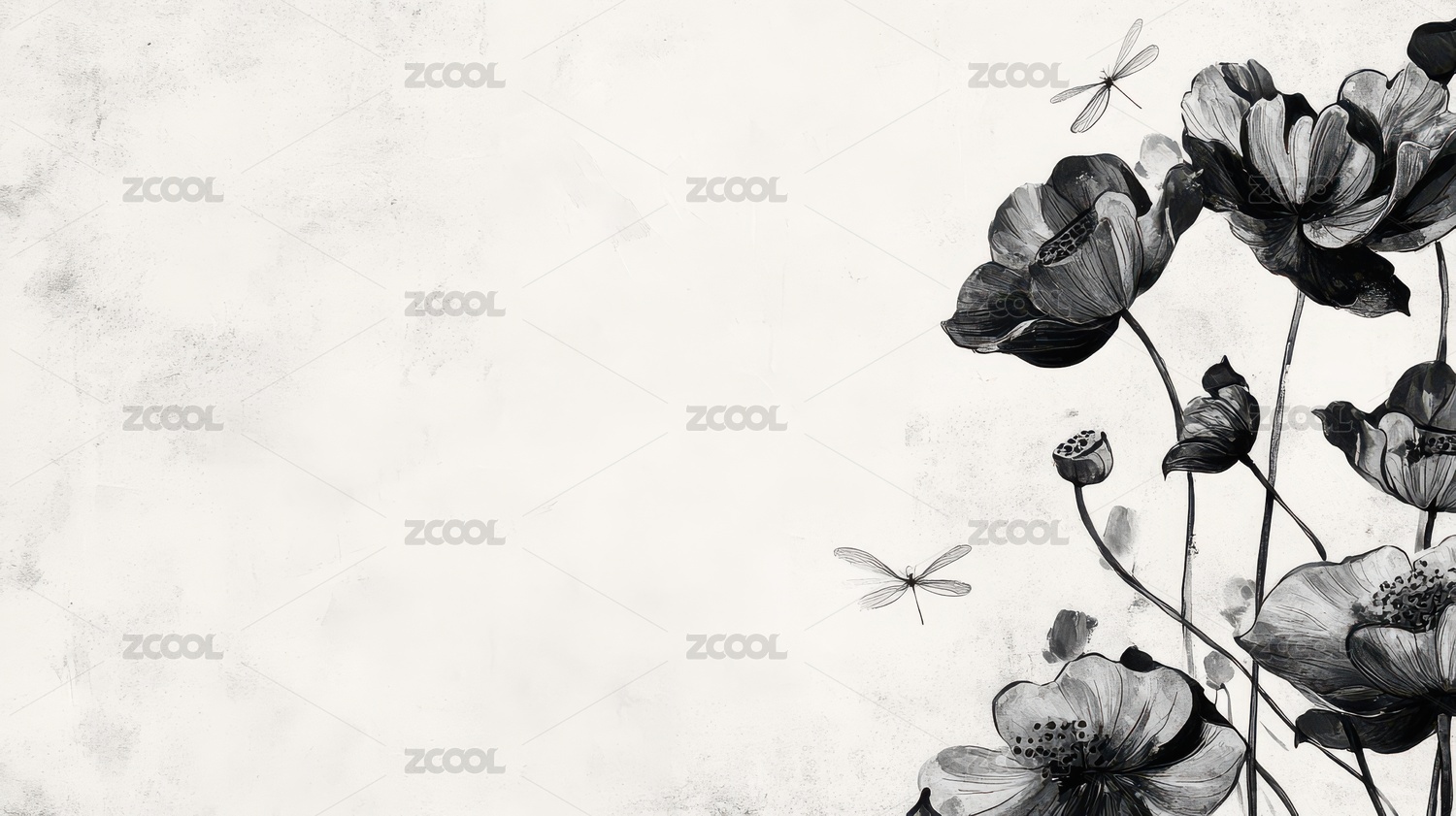 黑白花卉与蜻蜓的优雅景观