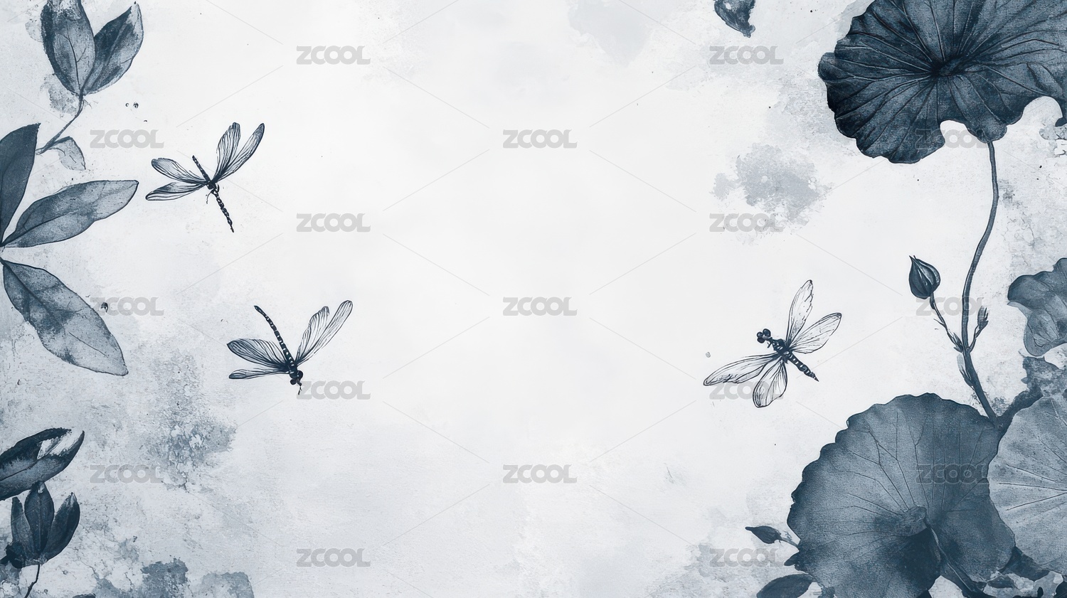 蜻蜓与荷叶的水墨艺术图景