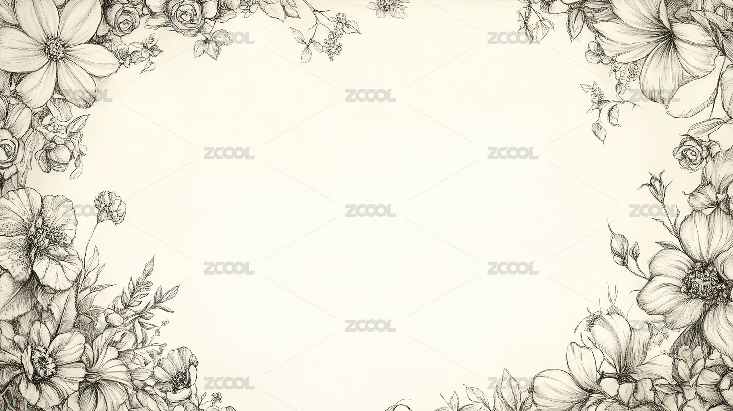 水彩风格淡雅花卉植物边框图案