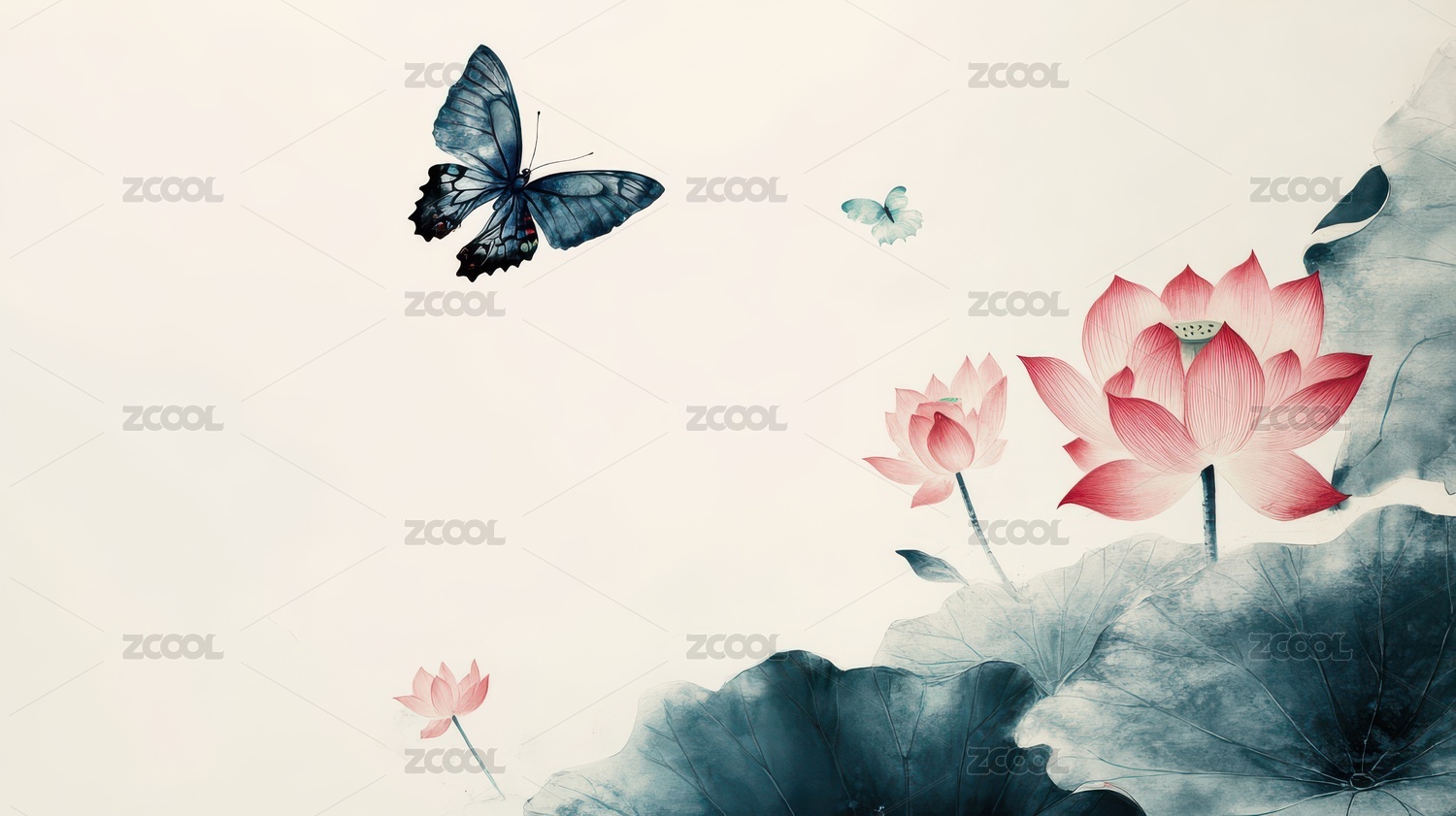 荷叶轻舞蝴蝶翩跹的静谧画面