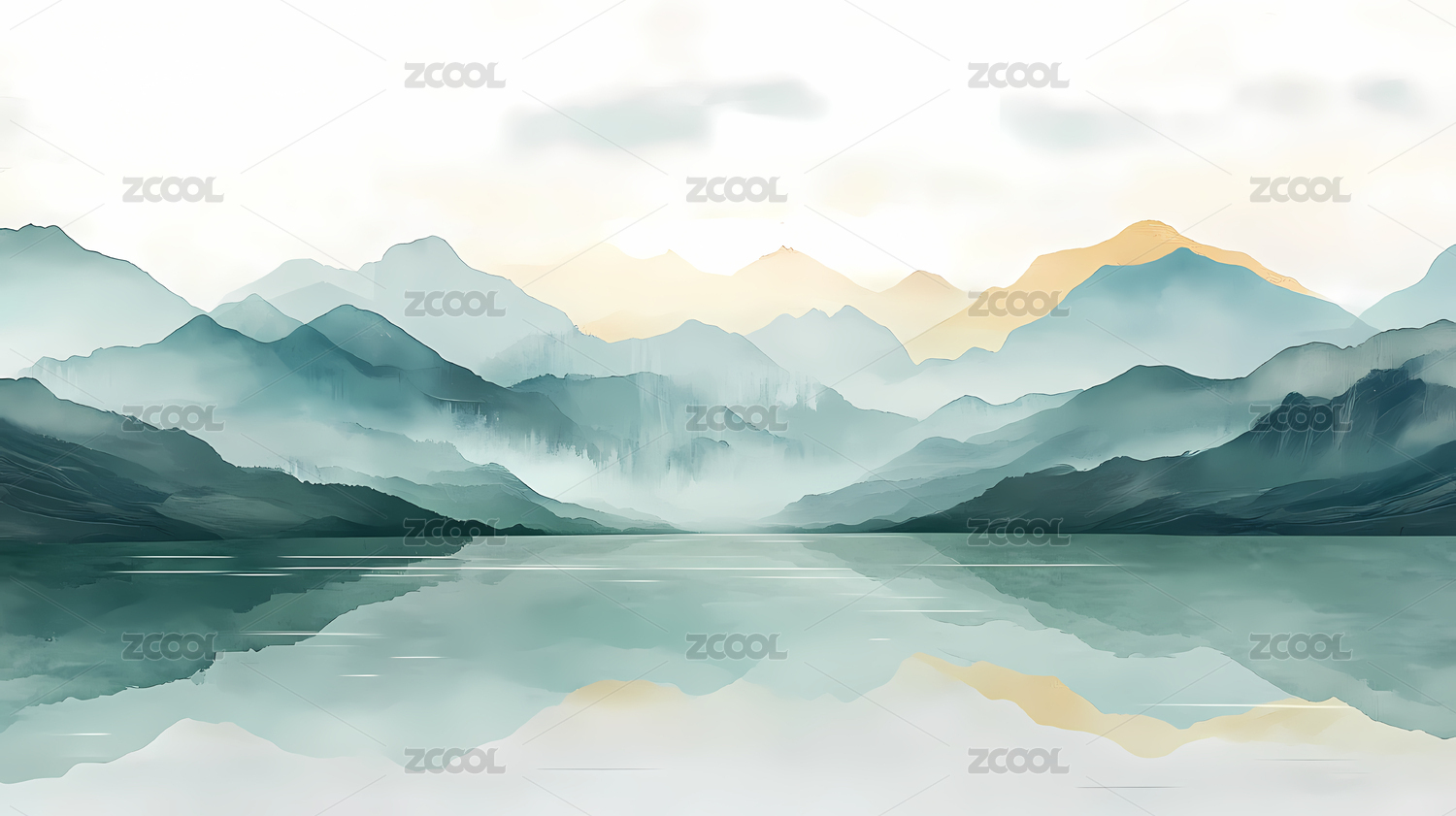 宁静,淡雅,倒影,云彩,天空,梦幻,山峰,湖水