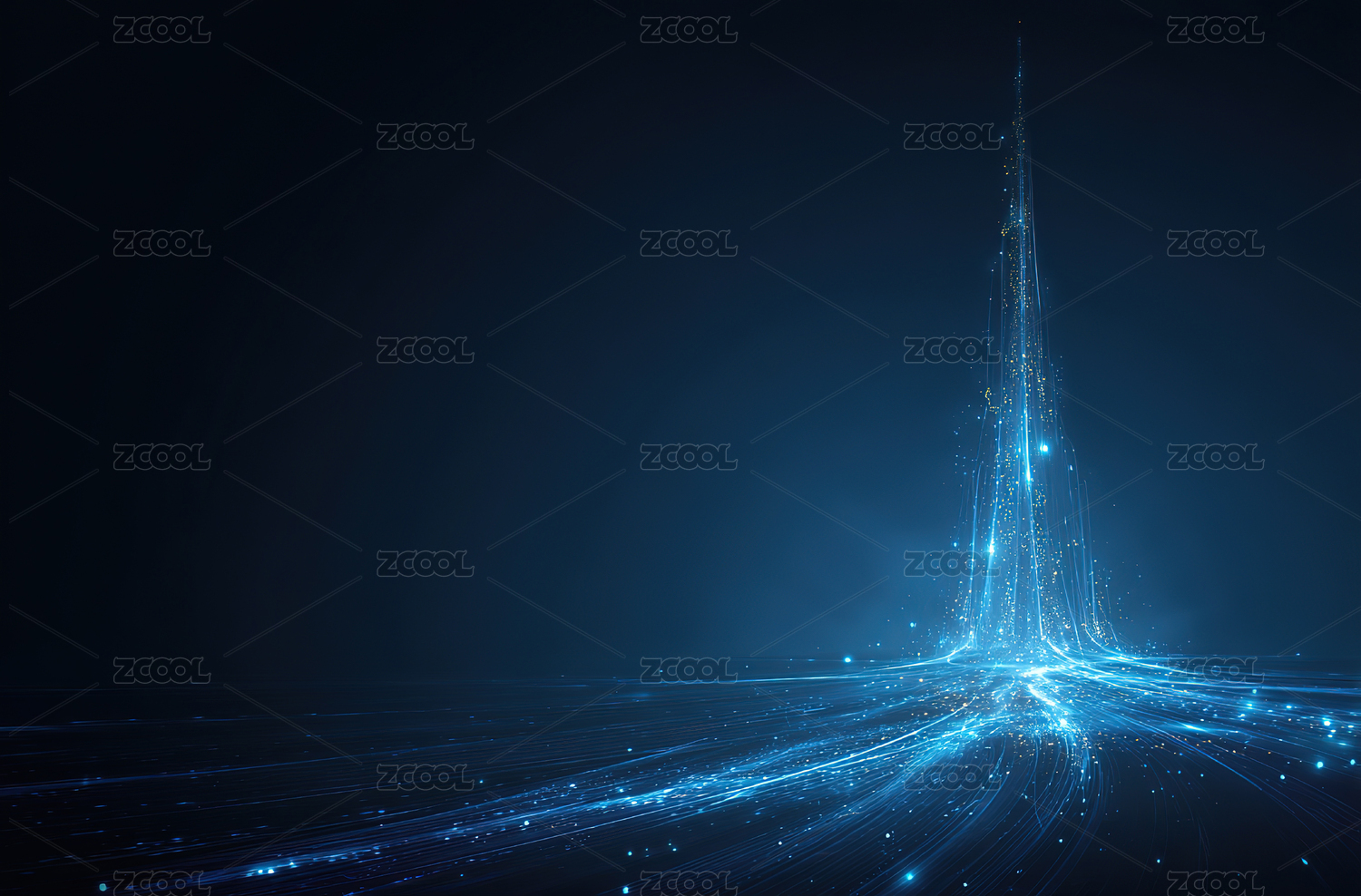 蓝色光束汇聚的抽象科技场景