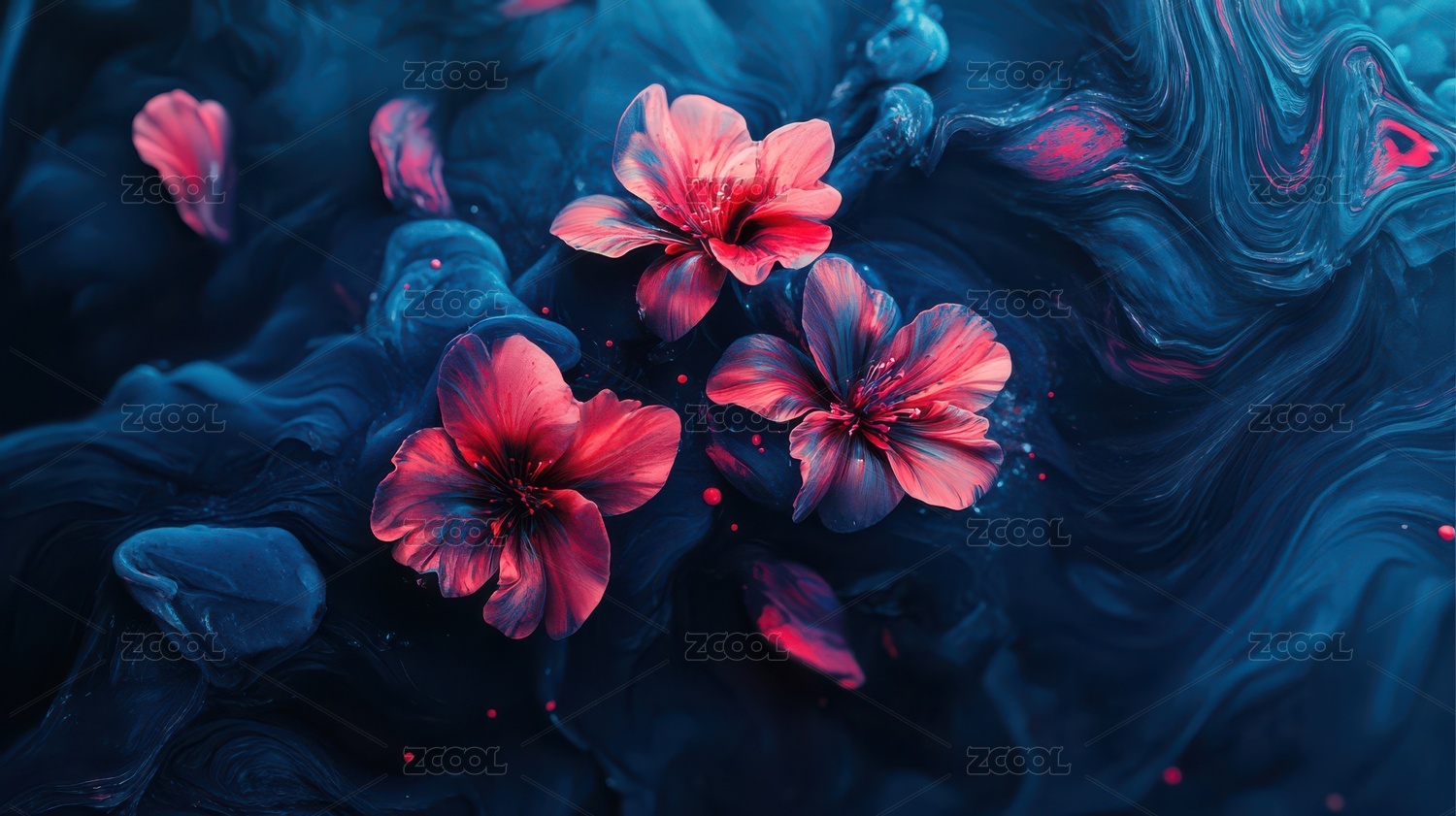 流动,艺术,抽象,背景,色彩,花卉,红花,蓝墨,融合