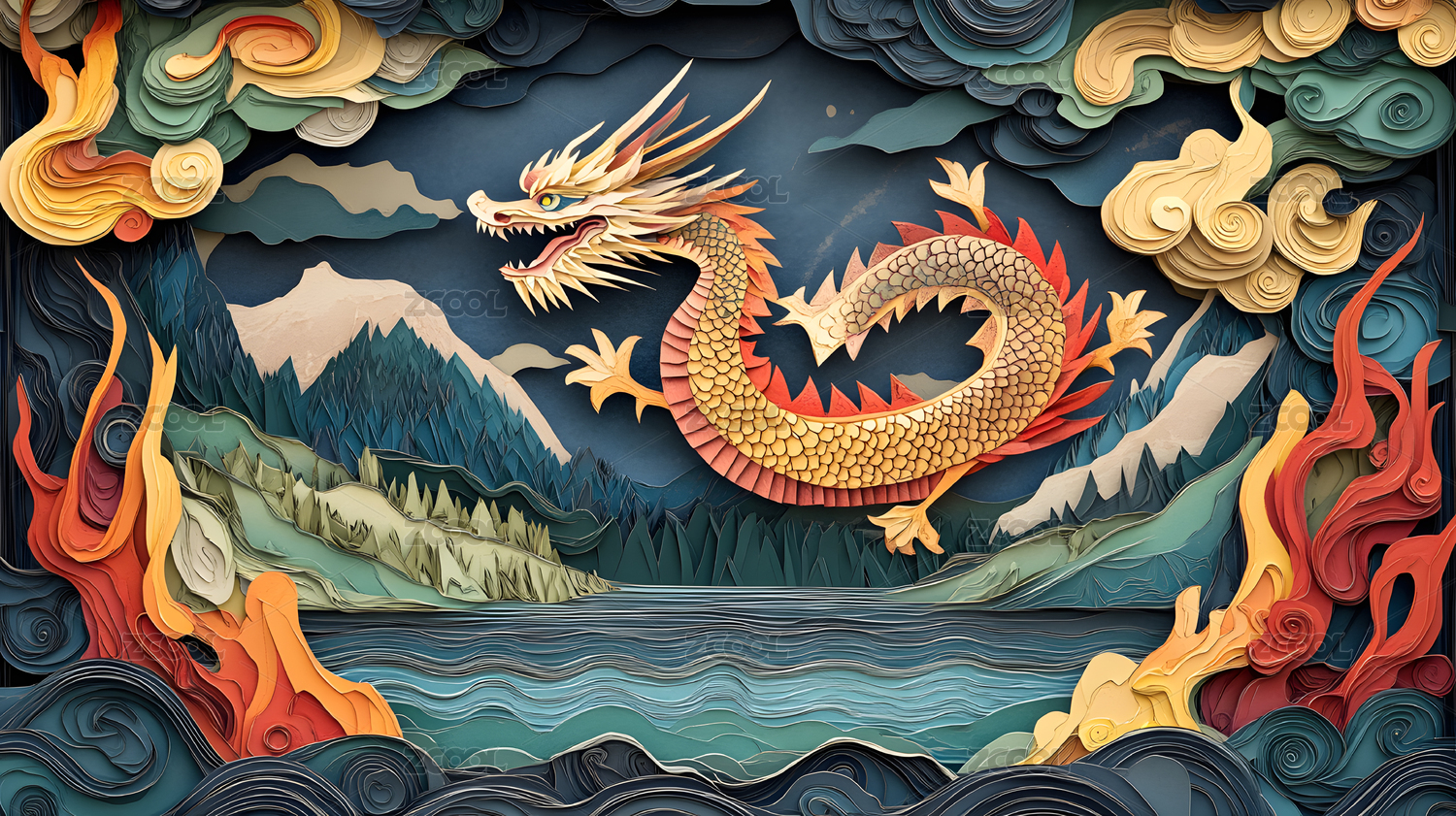 纸雕风格龙