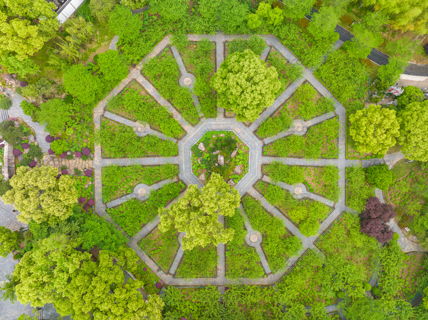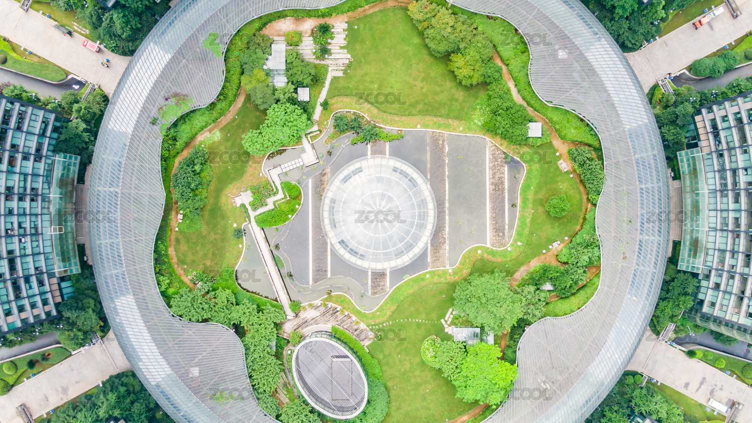 自然,圆形,广场,绿树,俯视,石板,树冠,景观