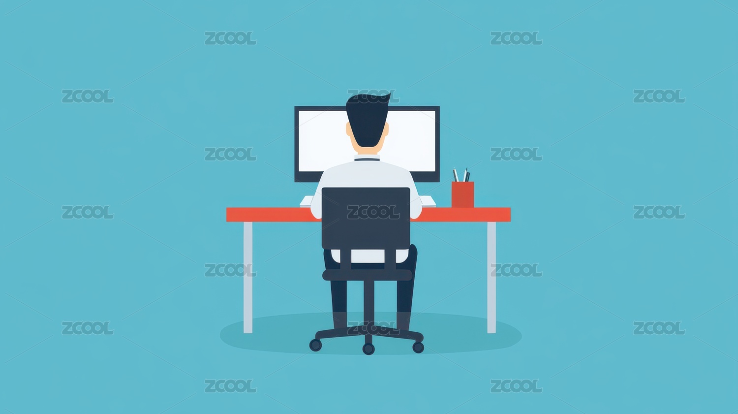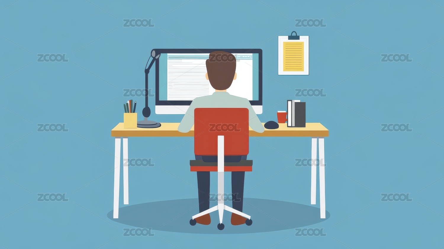 桌面,电脑,办公桌,人物,显示器,键盘,座椅,笔筒