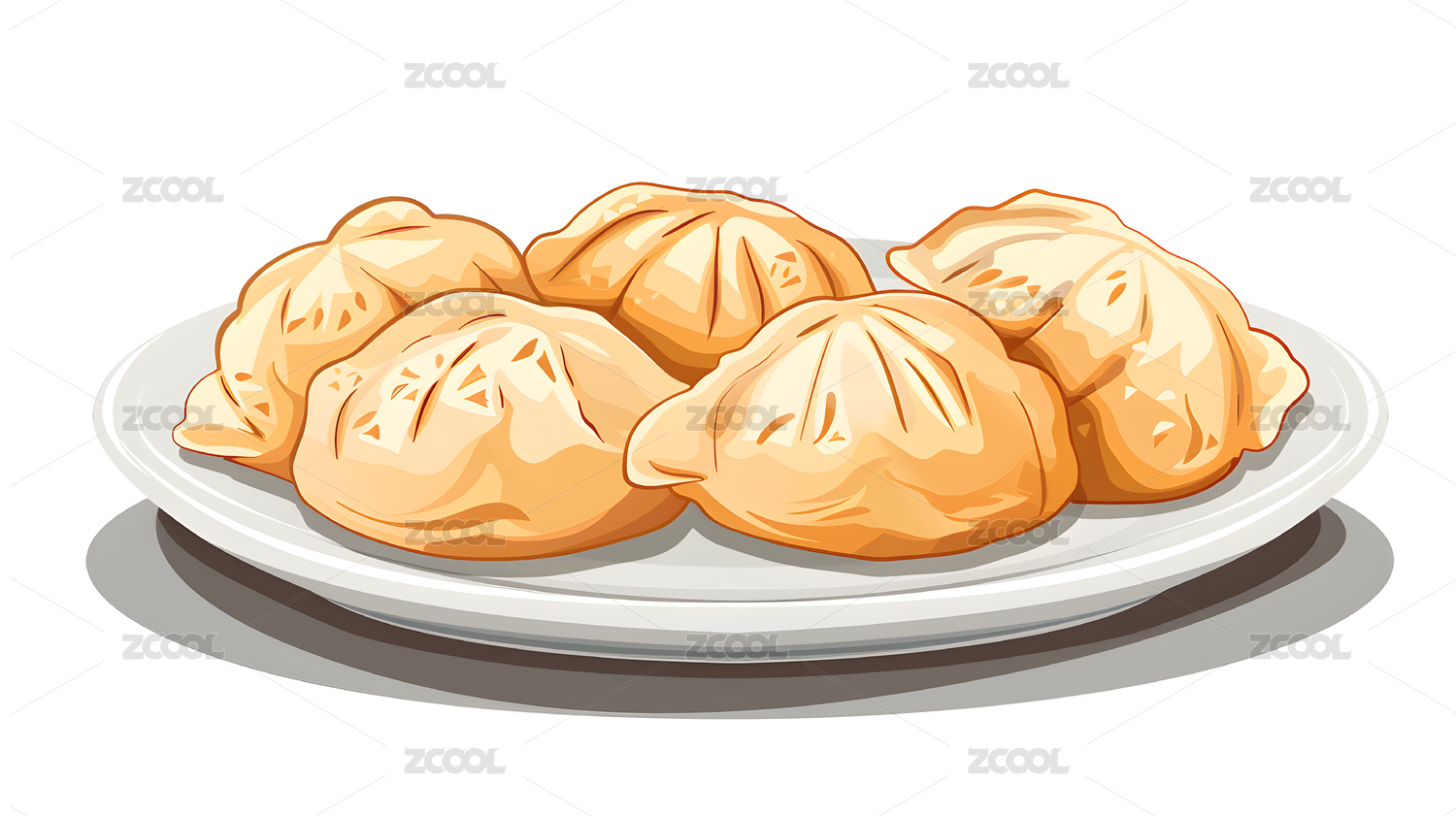 绿叶,简约,装饰,白色,饺子,盘子,褶皱,食物,美味