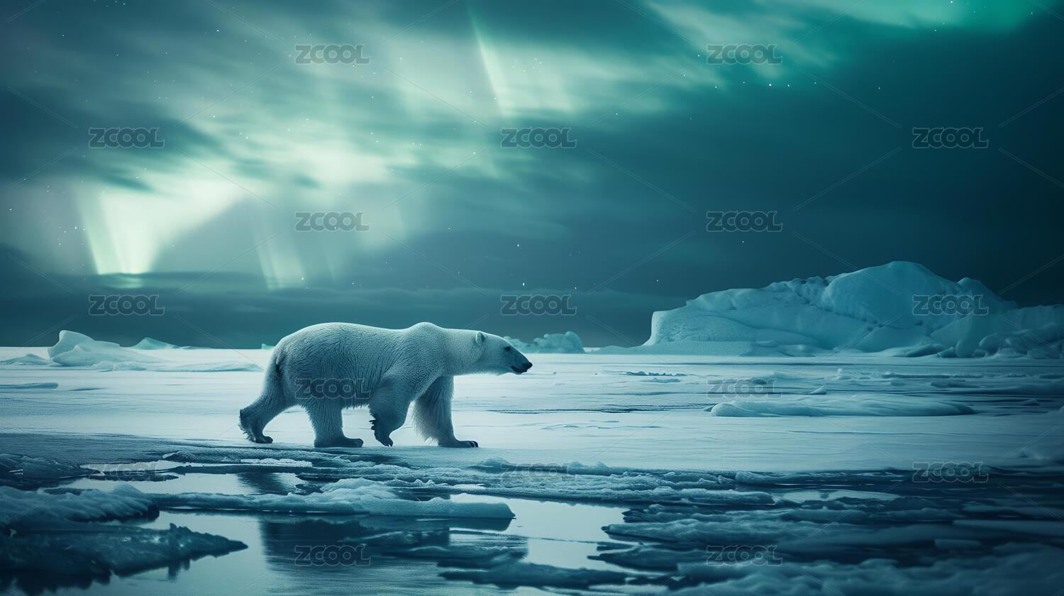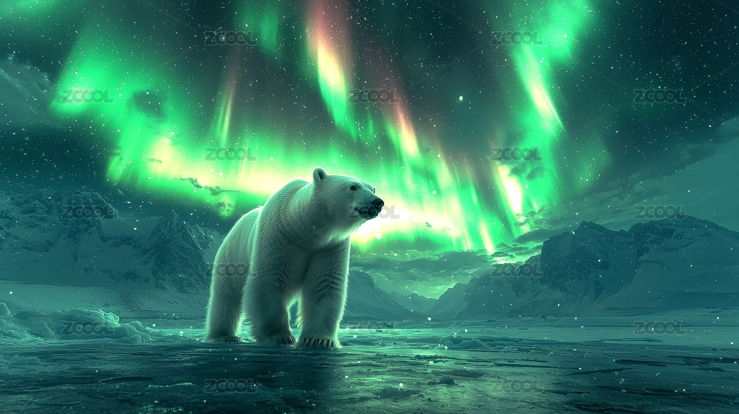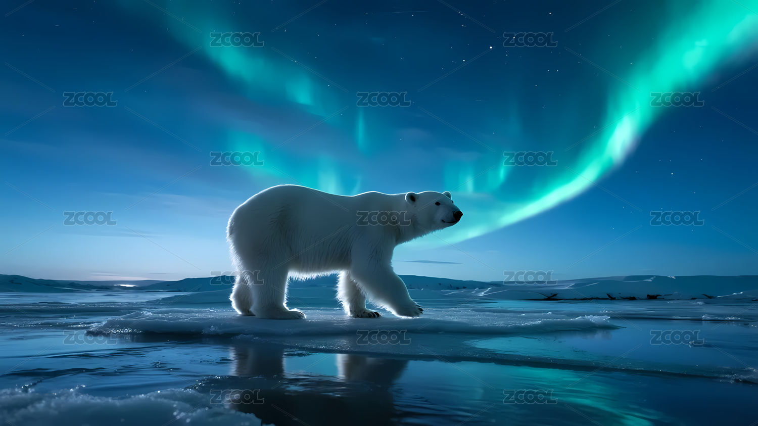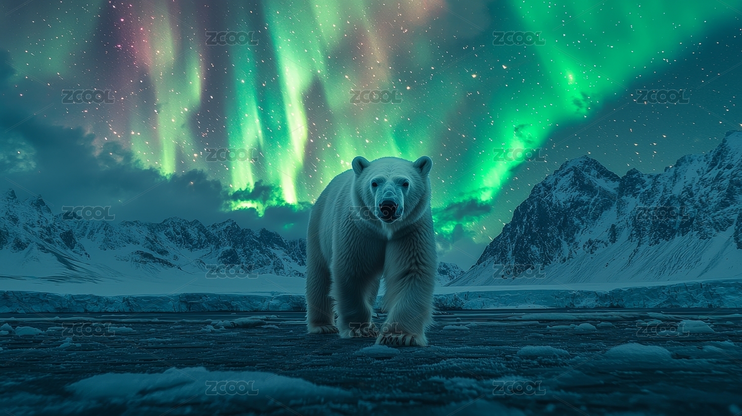 蓝色,夜空,白色,绿色,自然,北极熊,冰面,极光,山脉,动物