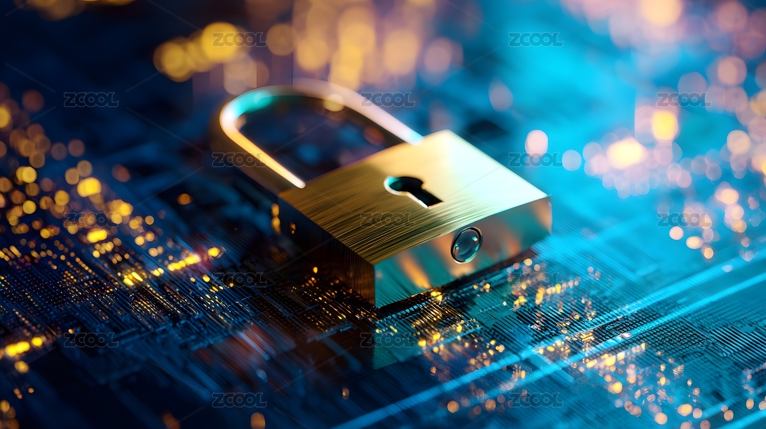 3D,立体,插画,背景,壁纸,抽象,密码锁,电路板,安全,科技
