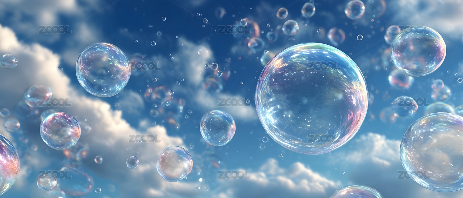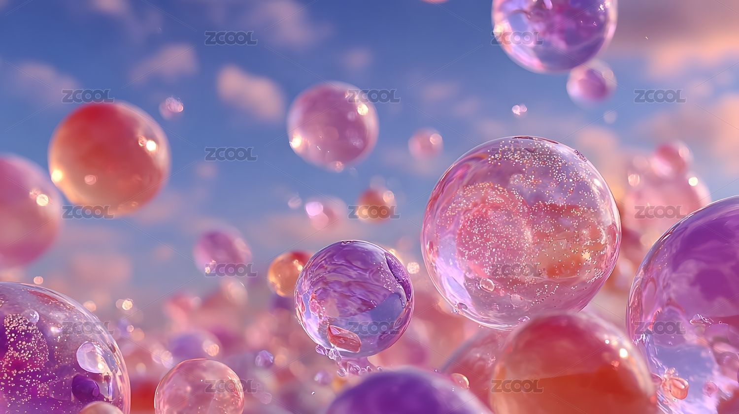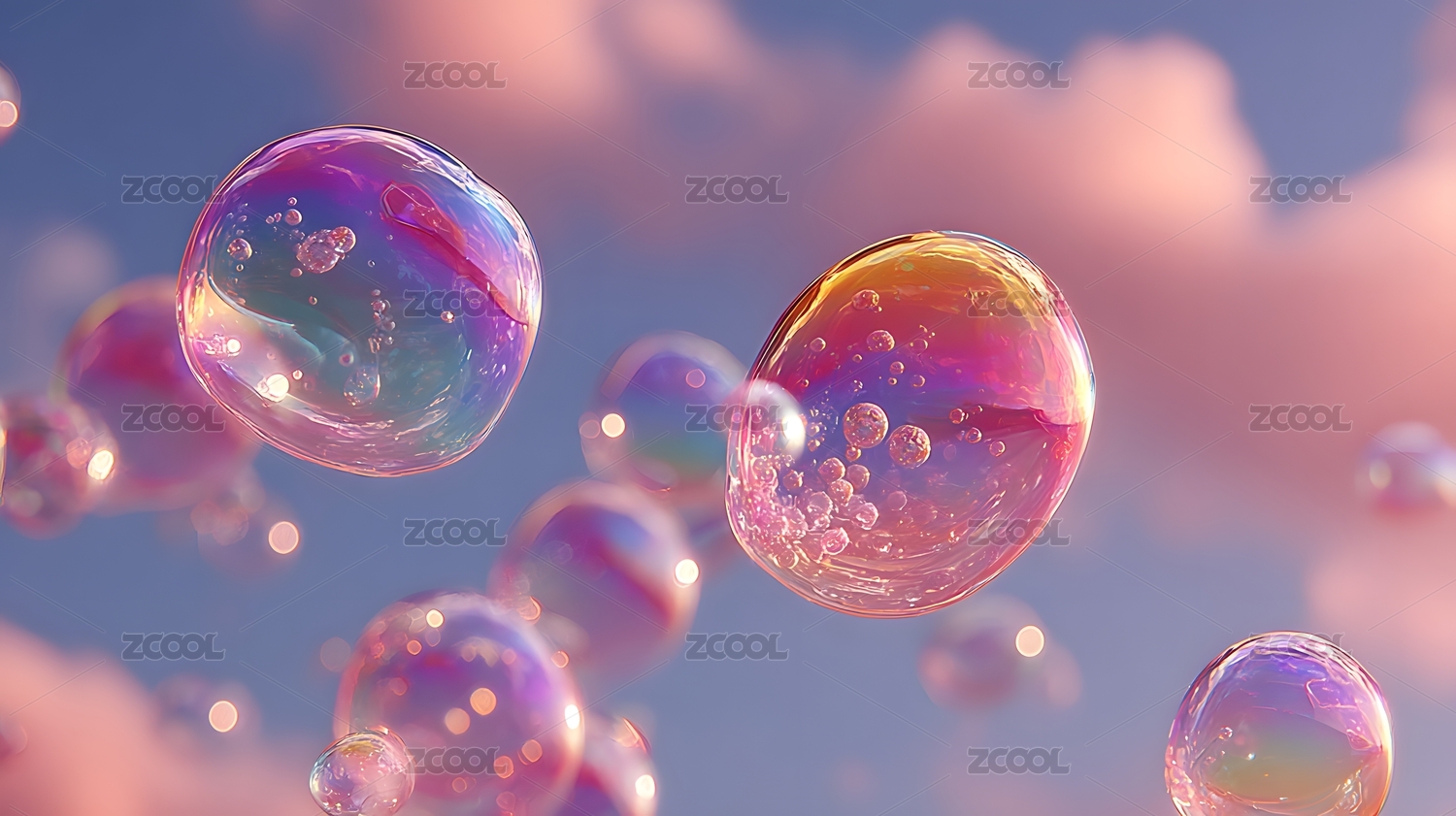 立体,3D,插画,艺术,壁纸,背景,梦幻,光影,泡泡,天空