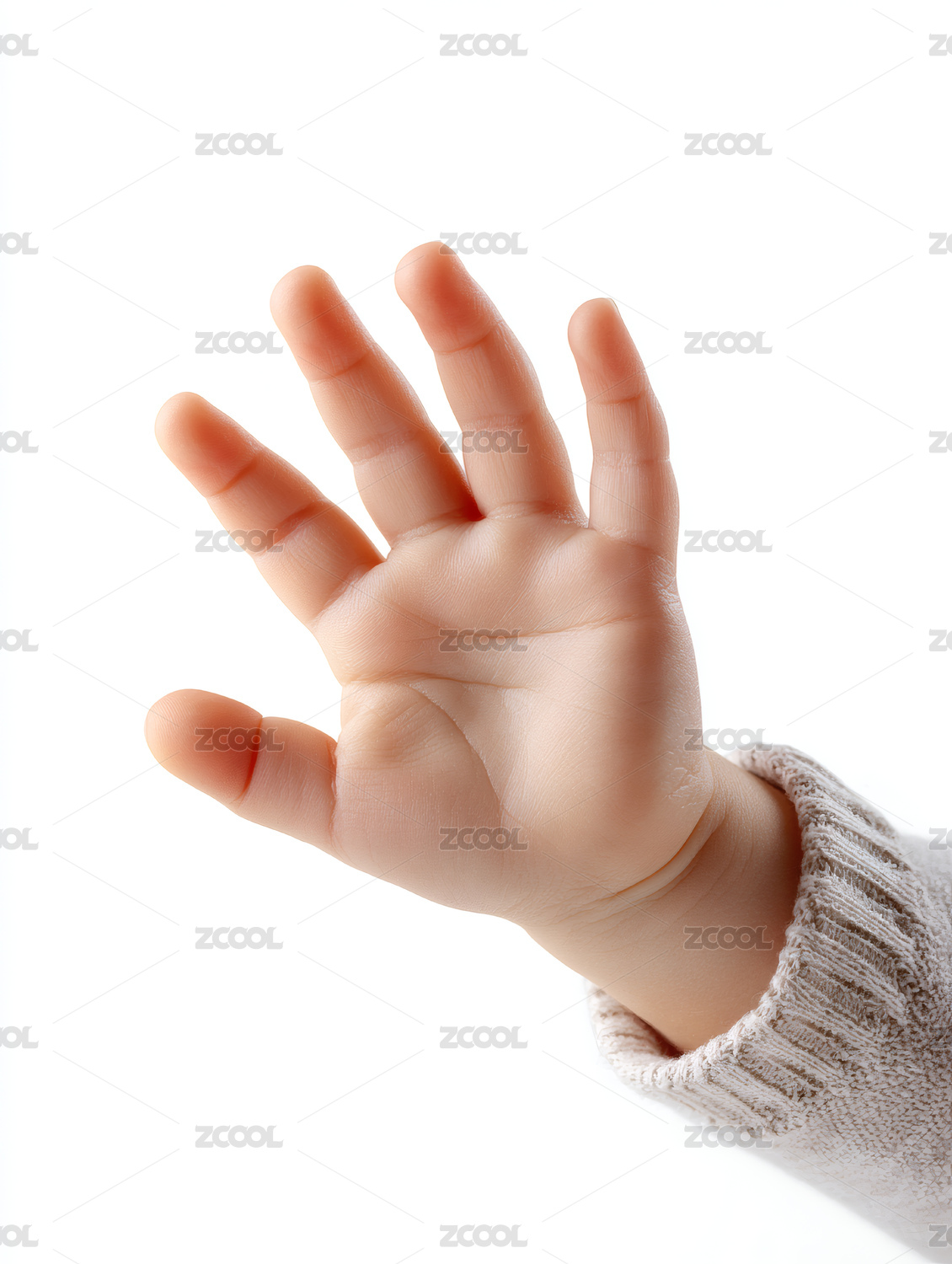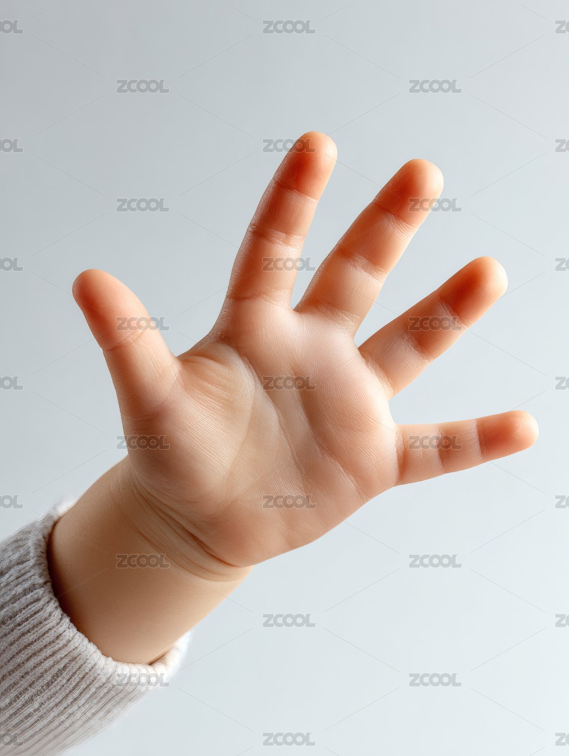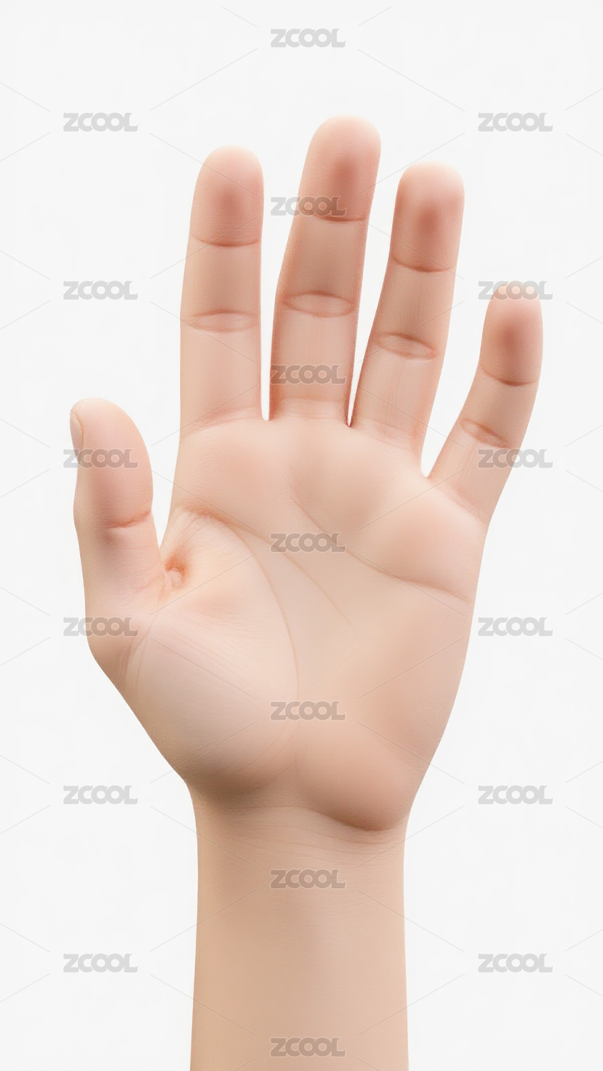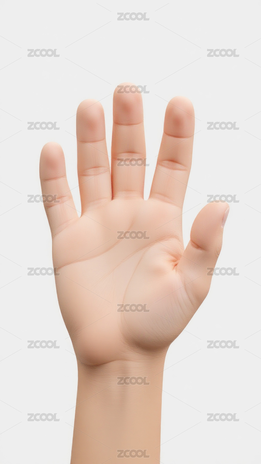 一只展开的手掌在白背景上