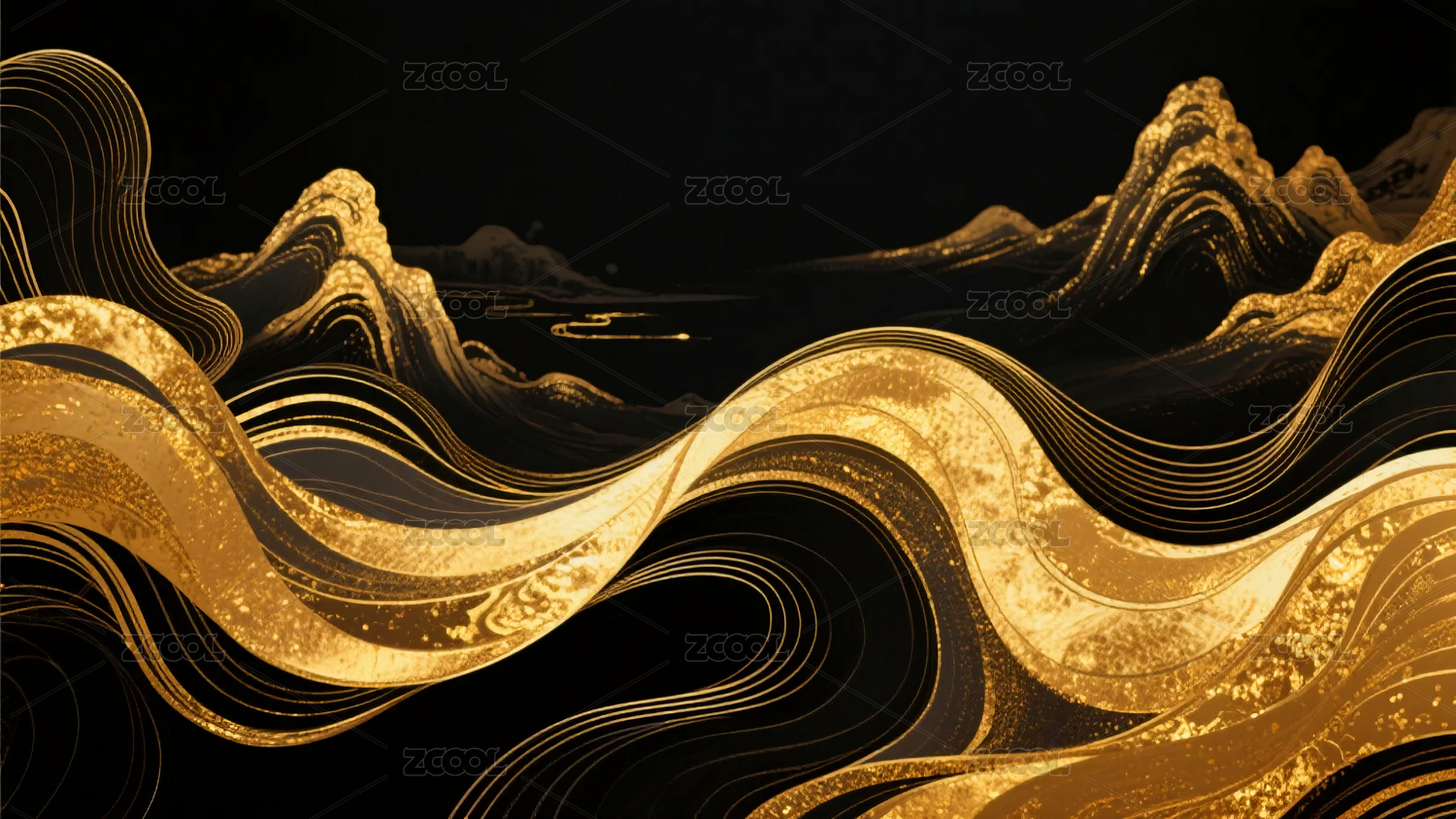 国风抽象鎏金流动山水背景