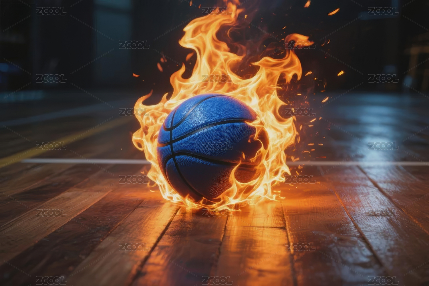 燃烧的篮球展现激烈运动氛围