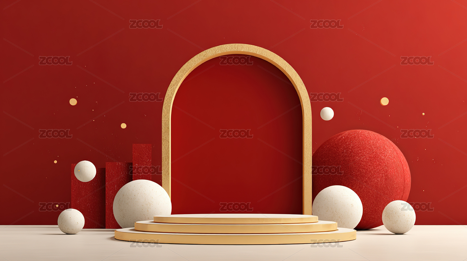 红色,舞台,金色,拱门,展台,几何,立体,装饰,背景,场景